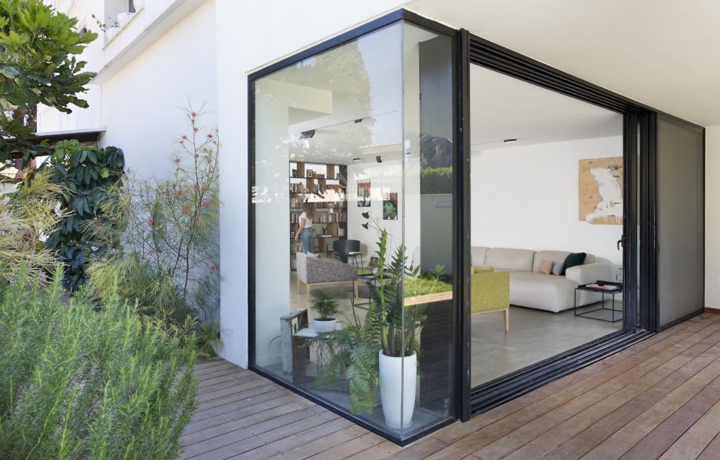 Sheinberger embarked on the project with a directive to preserve the original layout while infusing the space with creativity and uniqueness. She reimagined the entrance and front yard, elevating them with a wooden deck to match the house’s level. This strategic move not only unified the indoor and outdoor spaces but also crafted a vast area for family gatherings and entertainment. Moreover, she introduced a large, glass corner window to strengthen the bond between these areas.