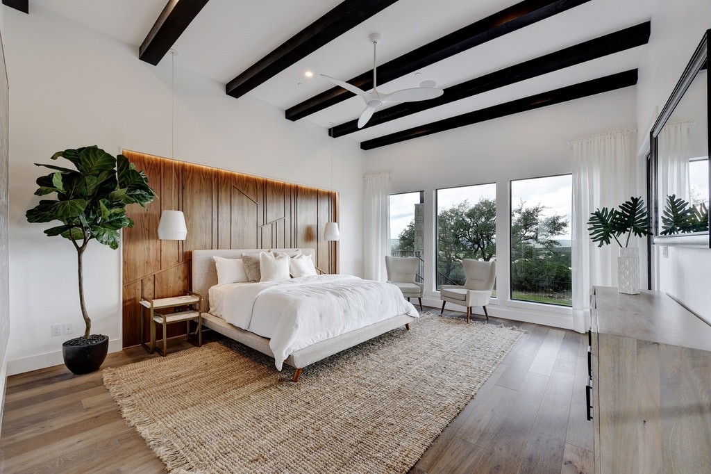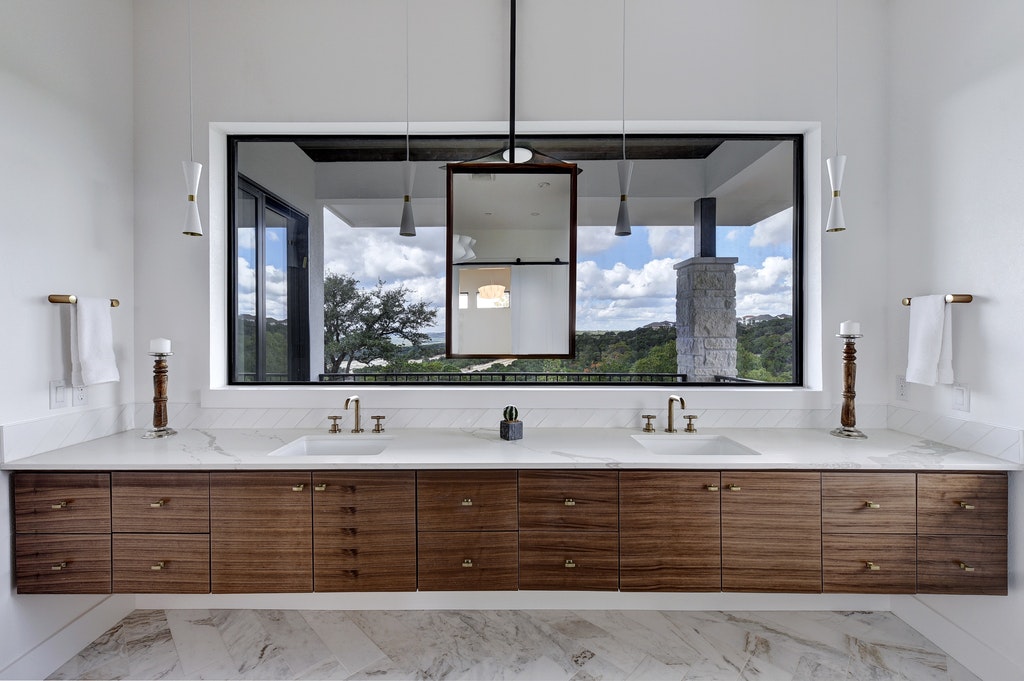 Located just outside Austin in the Central Texas Hill country, this home masterfully incorporates 360-degree views from every window and each of its seven patios. Inspired by a timeless California hacienda, the interior mirrors the exterior’s beauty, featuring rich white walls and organic wood accents.