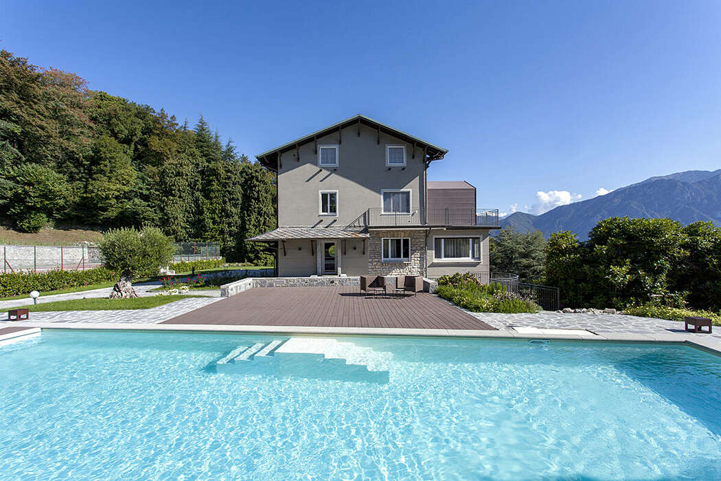 The villa’s exterior, a harmony of earth tones, greets guests with its understated grandeur. Manicured hedges and a crystal-clear pool whisper of luxury, while the backdrop of Italian hills echoes tranquility.
