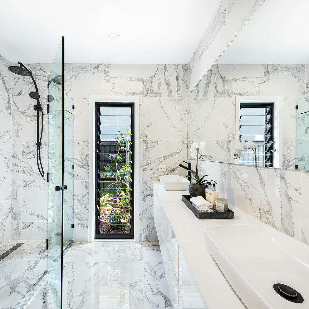 At the heart, the kitchen stands as a hub of culinary and social interaction, surrounded by the dining and living areas. Seamlessly, these spaces transition into an alfresco experience, with doors that glide open to reveal an inviting backyard oasis.
