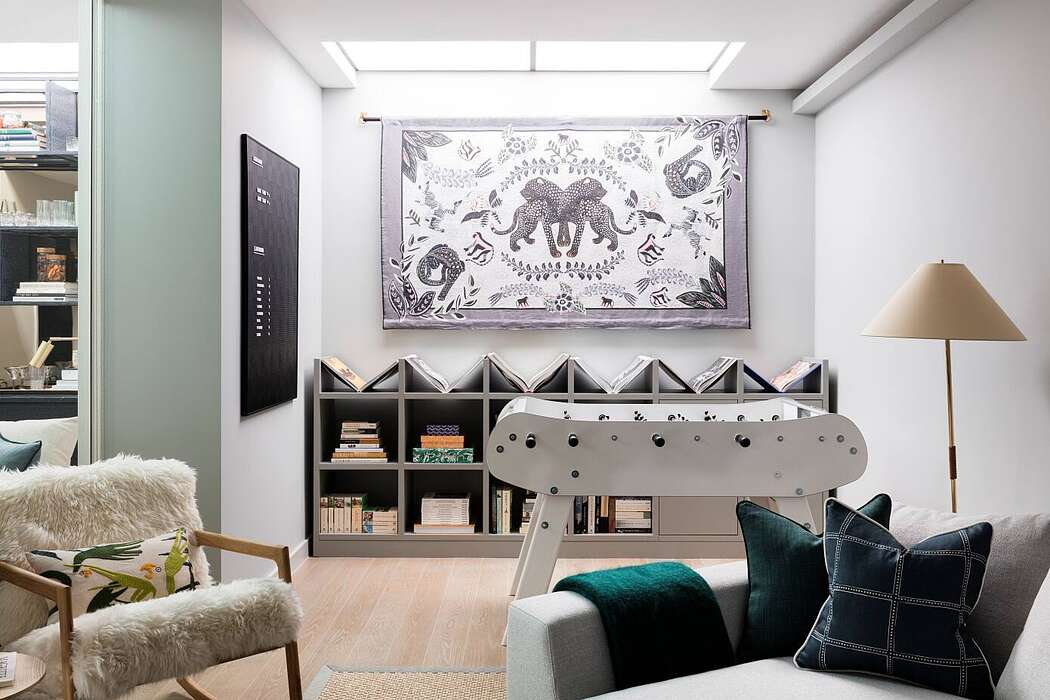 Within this house, art takes center stage, with pieces from both rising and renowned artists adorning the walls. Notably, Tim Hall’s photographic series from Skedar Lake and Jesus Perea’s geometric bedroom prints reflect the studio’s dedication to visual storytelling. Additionally, a rug in the master bedroom, inspired by Paul Klee’s patterns, exemplifies Studio Ashby’s commitment to integrating art into everyday living spaces.
