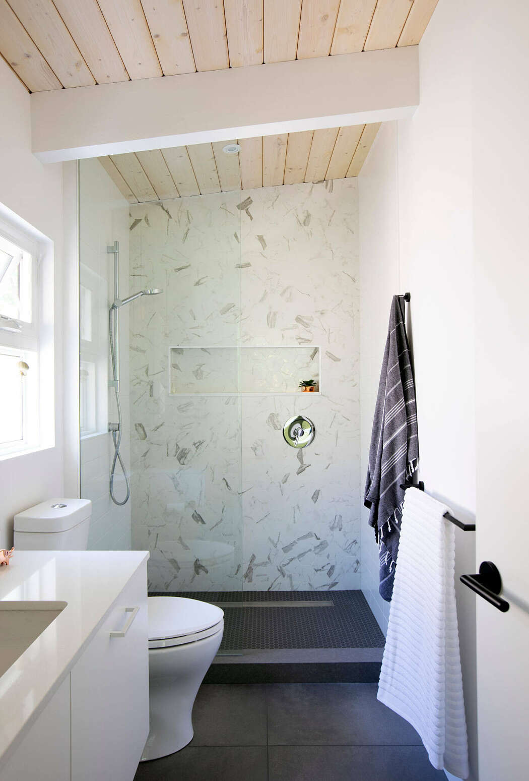 In a transformative move, the designers replaced the red cedar ceilings with standard pine, instantly brightening the space. This significant yet respectful change is just one of many we’re eager to unveil.