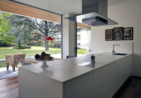 Designed in 2017 by DamilanoStudio Architects, Villa Geef is a modern single-story villa located in Sondrio, Italy.
