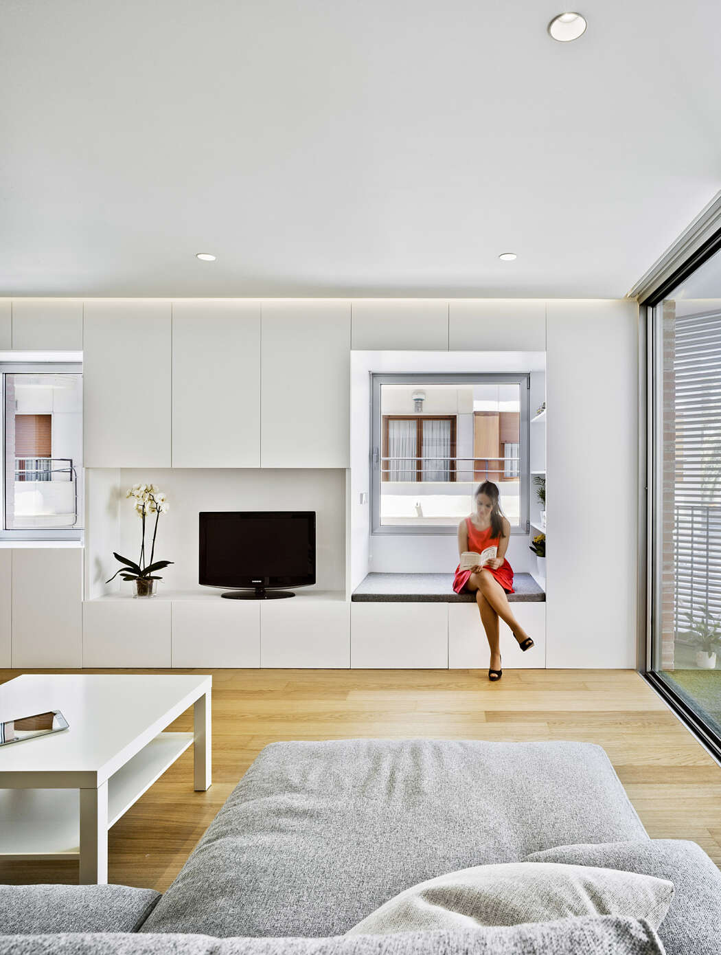 Set in Petrer, Alicante, Spain, this home got a makeover. Originally, the ground floor had parking. Then, the day area sat on the first floor and bedrooms on the second. We made small changes to the façade, especially around the balcony. We also opened up windows to link the living room and terrace.