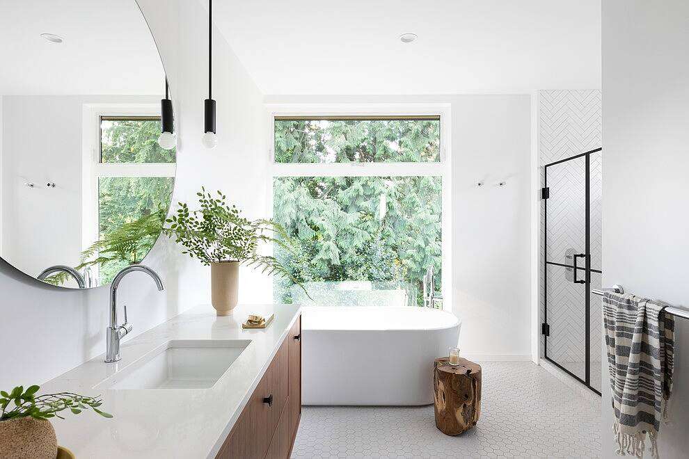 In curating the materials, a distinct mid-century charm was paramount. Yet, simultaneously, there was a compelling drive to mirror the family’s breezy West Coast lifestyle. Eagerly wishing for the interior to emanate brightness, they opted for a harmonious blend of white oak flooring and pristine millwork. Consequently, the rich tones of walnut accents and whimsical tile patterns seamlessly found their place. Additionally, finishes, thoughtfully chosen, cater impeccably to a family’s everyday needs—being durable, relaxed, and welcoming.