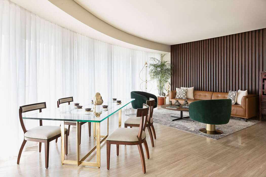 Upon viewing the building’s shell, our vision crystallized. Although Armani Casa designed the shell, we sought a cozier aura for the apartment. We aimed to honor the existing materials, marbles, and wall shades, while interweaving our unique touches. Specifically, the apartment’s curved living space captured our admiration. Consequently, we maintained a transparent ceiling design and opted for Arjun Rathi’s standing floor light. Each room blossomed from distinct inspiration.