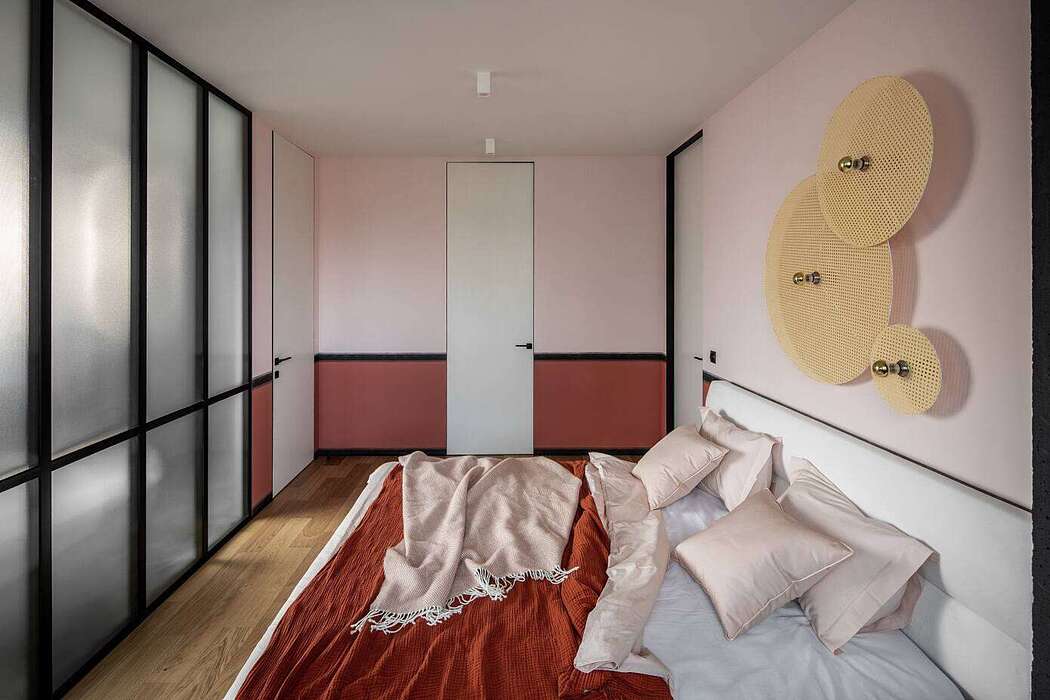 The redesign strategically separates adult and children spaces. The master bedroom, boasting an ensuite bathroom and walk-in closet, hides behind an almandine wall with intricate moldings. Meanwhile, a uniquely colored portal leads to the children’s wing, resembling more of an art space than a corridor. Every detail, from the doors to the ceiling, embodies a consistent hue, showcasing varied materials in a unified color.