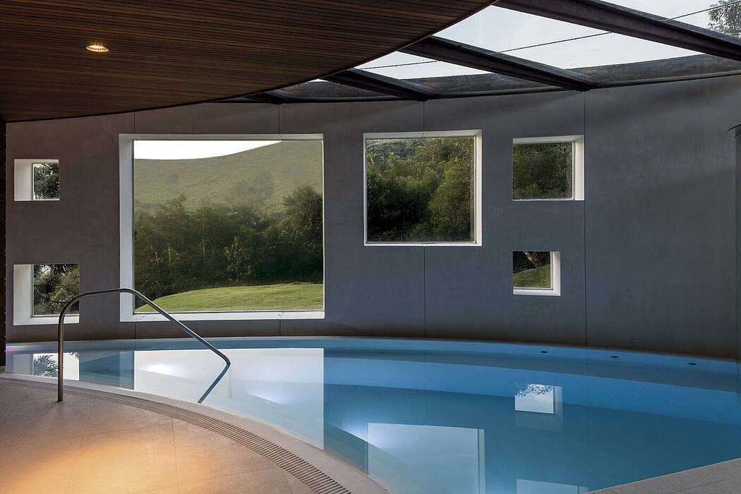 The social level’s elliptical layout, housing an indoor SPA, pool, and sauna, dictated the house’s overall volume. Beneath this, a dimly lit ramp leads to the wine cellar, the most introspective space.