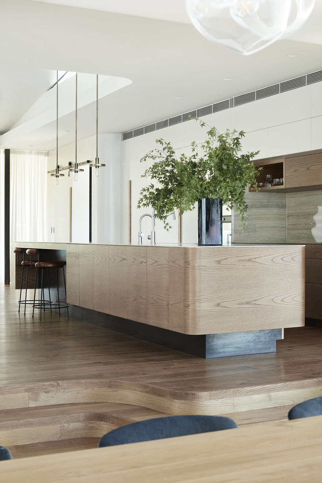 Nestled into Sydney’s rocky Pacific coast, this home serves as a sanctuary for reflection. Here, residents embrace the ocean’s mesmerizing dance, observing each wave’s rhythm and the serene journey of marine life and shifting skies. It’s a soothing escape from today’s bustling world.