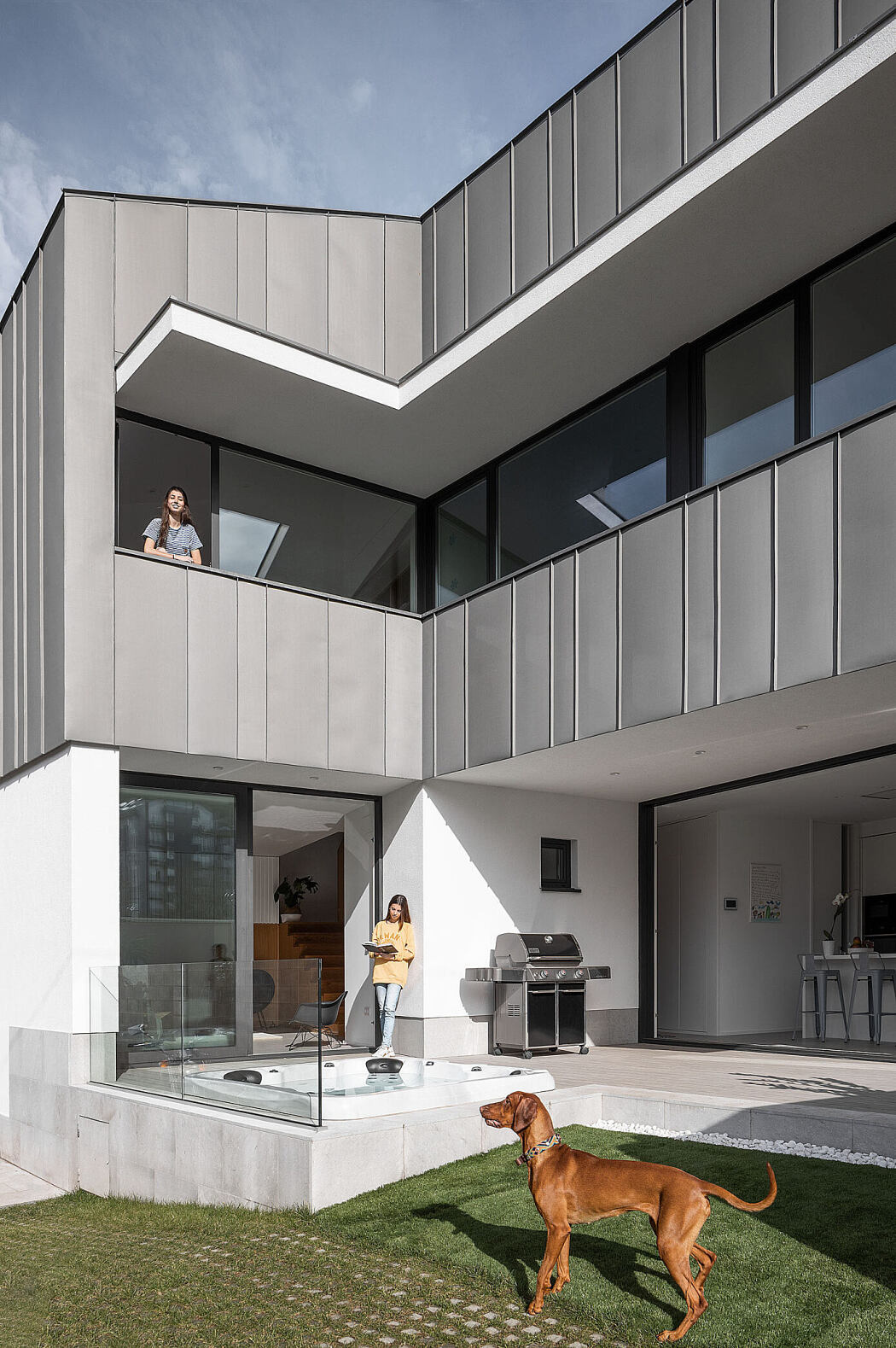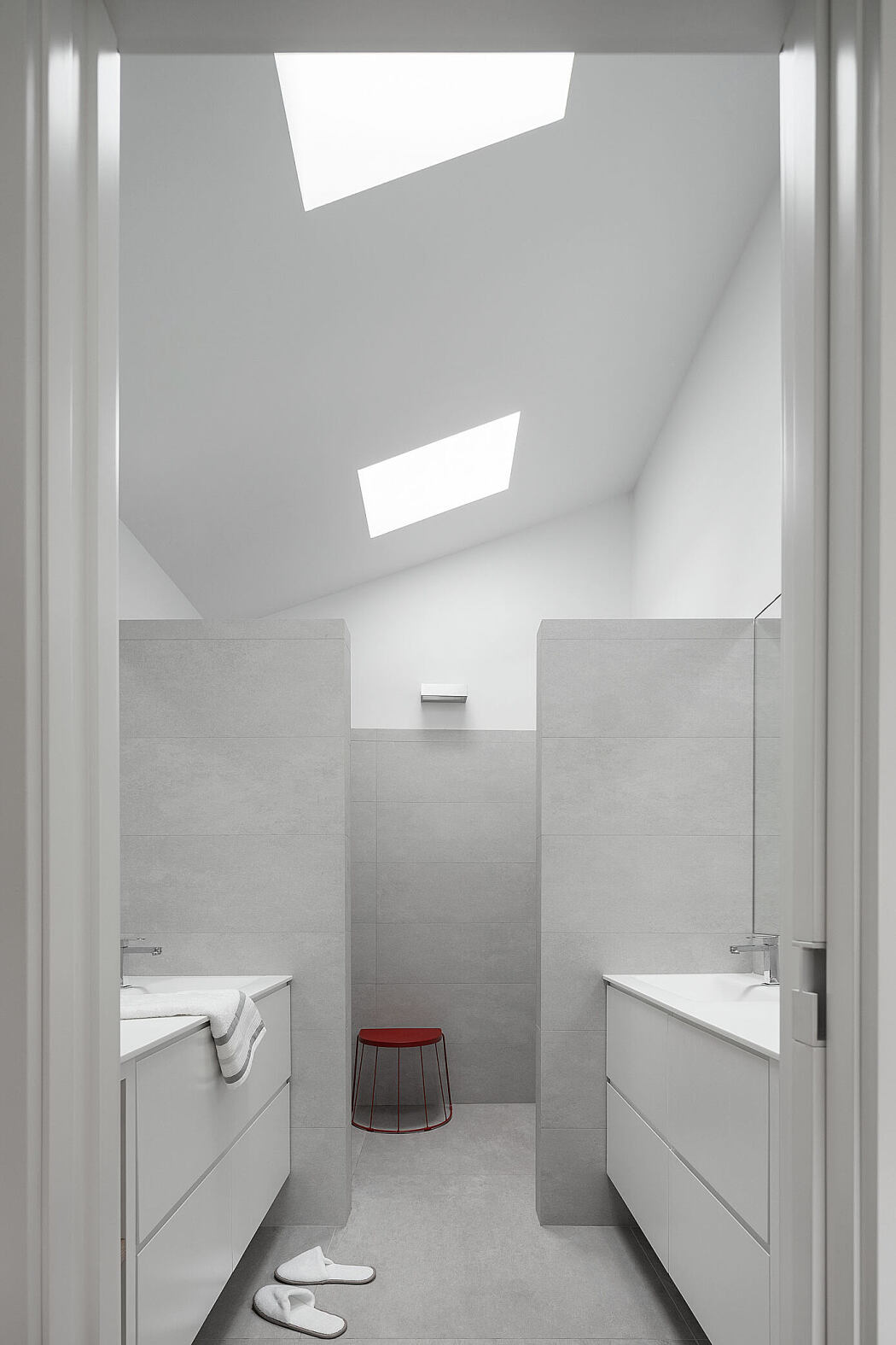 Zinc defines the exterior, letting the home “float” above its white foundational walls. This design choice honors the area’s mining history, particularly the Real Compañía Asturiana de Minas’ zinc production in 1851.
