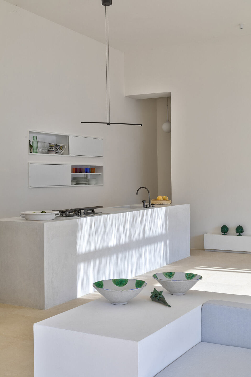 Nestled within a regional park situated between the rocky Adriatic coast and the pristine white beaches of the Ionian Sea, a house stands out as an emblem of tranquillity and refined design. This elegant abode is the creative product of Lorenzo Grifantini, the director of DOS Architects – an established London-based architecture studio with an international portfolio. Assisting Lorenzo in bringing this architectural gem to life is his wife, Allegra Figus, who lent her talent to the home’s interior design.