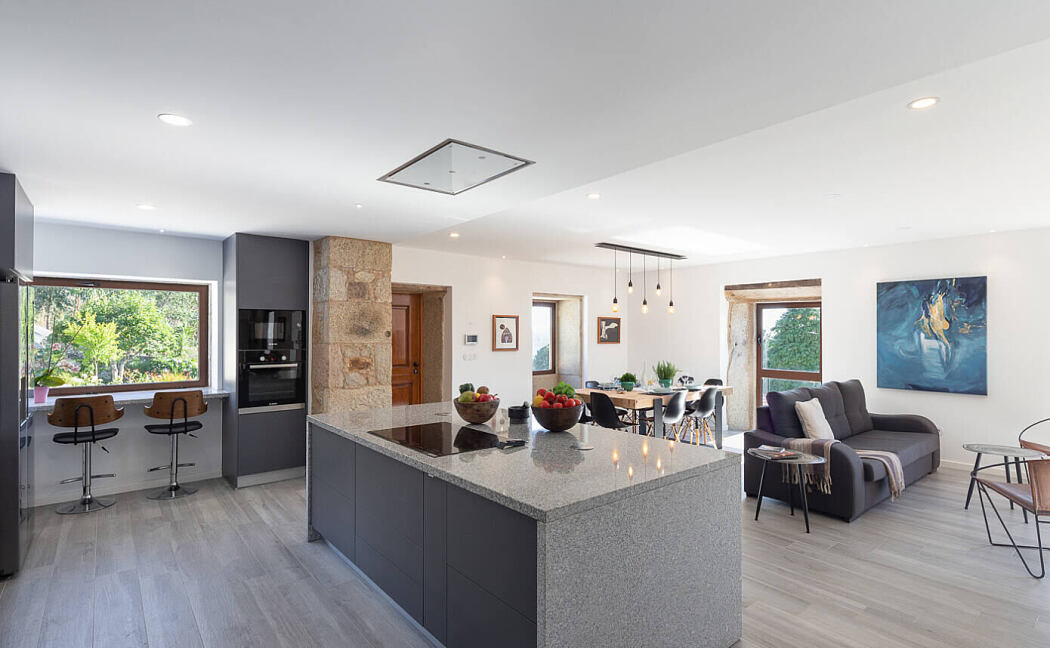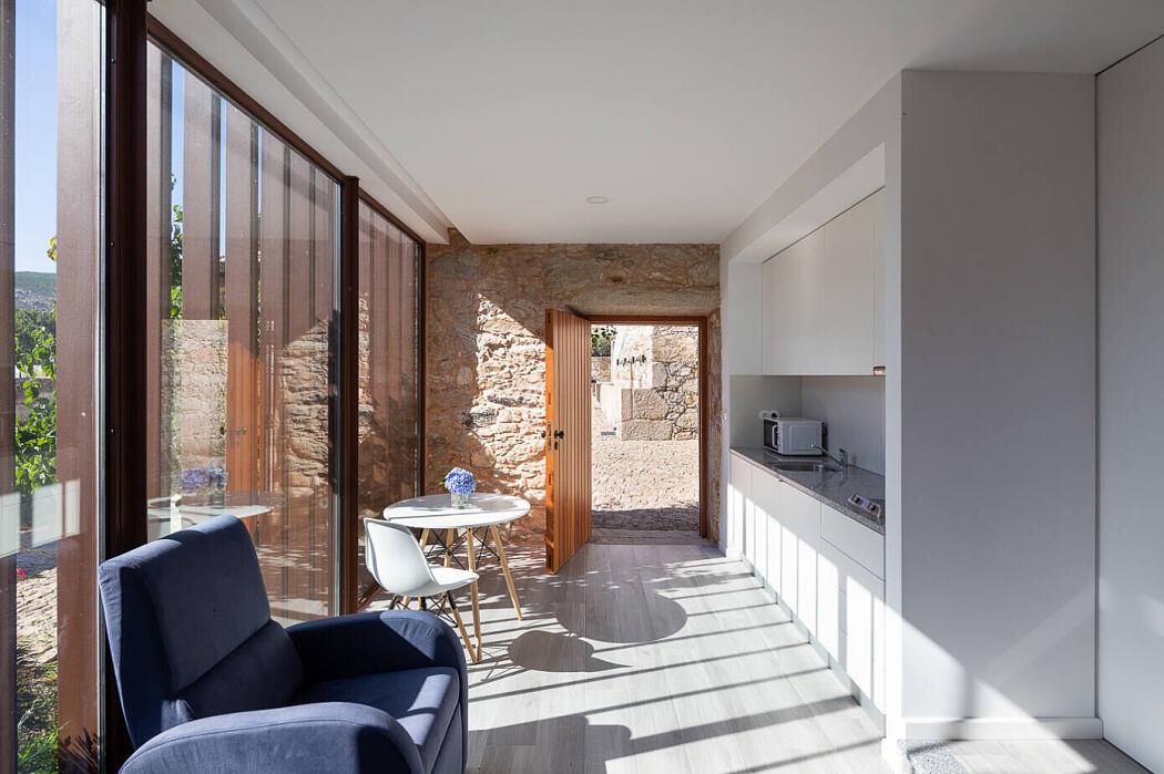 Nestled in the heart of the breathtaking Northern Portugal landscape, the historic Armadas Lodge takes center stage as a luxurious full-service rental. This recently renovated house extension is the brainchild of renowned architect, Mariana Campos. She beautifully marries traditional design elements with a modern aesthetic to breathe new life into the estate.
