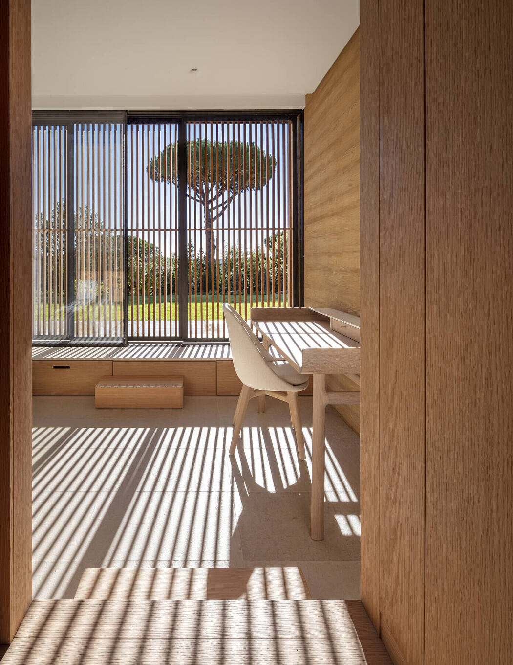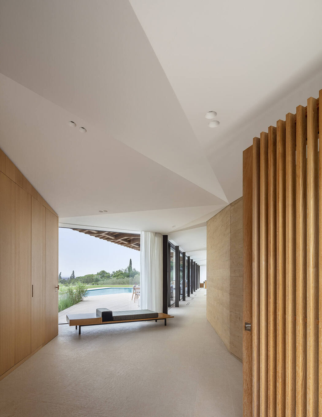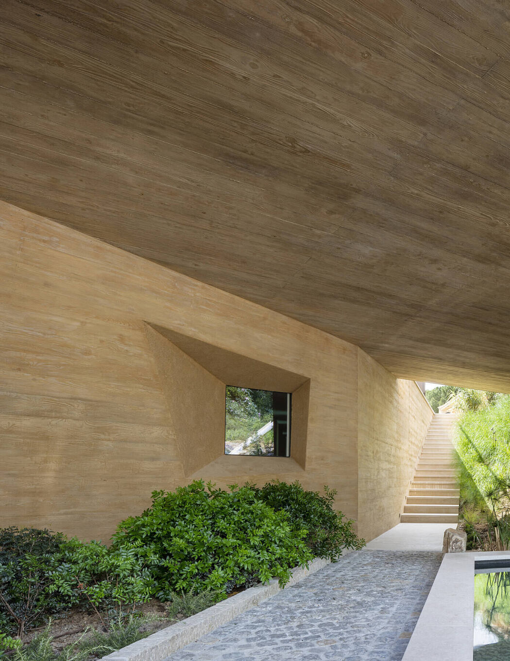 In the design of this home, the family aimed to cultivate a small plot of agricultural land as a testament to their stewardship. The design’s most striking feature is a grand, vaulted entrance leading to a central courtyard, harmoniously integrating the house with the surrounding landscape.
