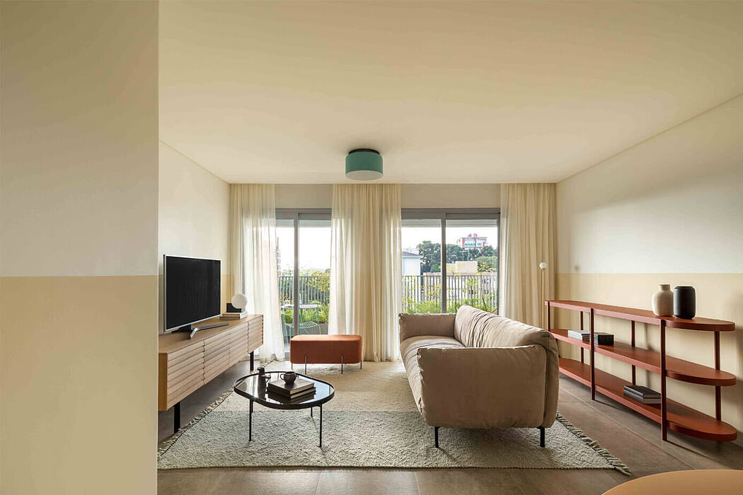 Situated in Curitiba, Brazil, a stunning apartment building primarily attracts a young demographic of families with children. The design team made a bold choice, opting for a contemporary aesthetic. It boasts a fresh, authentic vibe with simple lines and volumes that mutually enhance through the interplay of natural materials and bold color accents from furnishings and lighting.