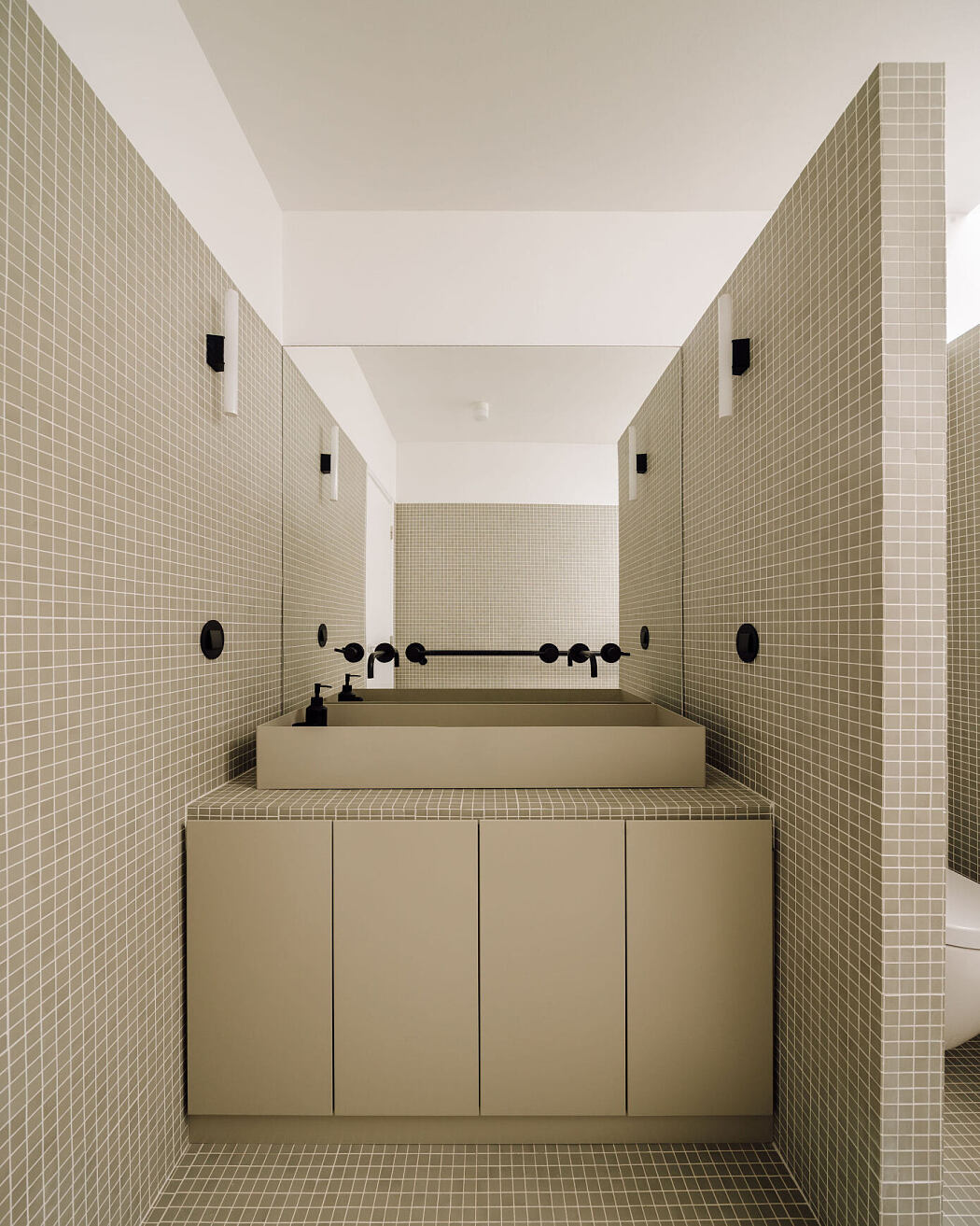With respect to finishes, the project embraced the abstract beauty and plasticity of stark white walls, sharply contrasted by the exposed polished concrete floors. These floors foster a fluid connection between the interior and exterior paving. To infuse each dwelling with a unique personality, we employed a bold color scheme in the kitchens and bathrooms.