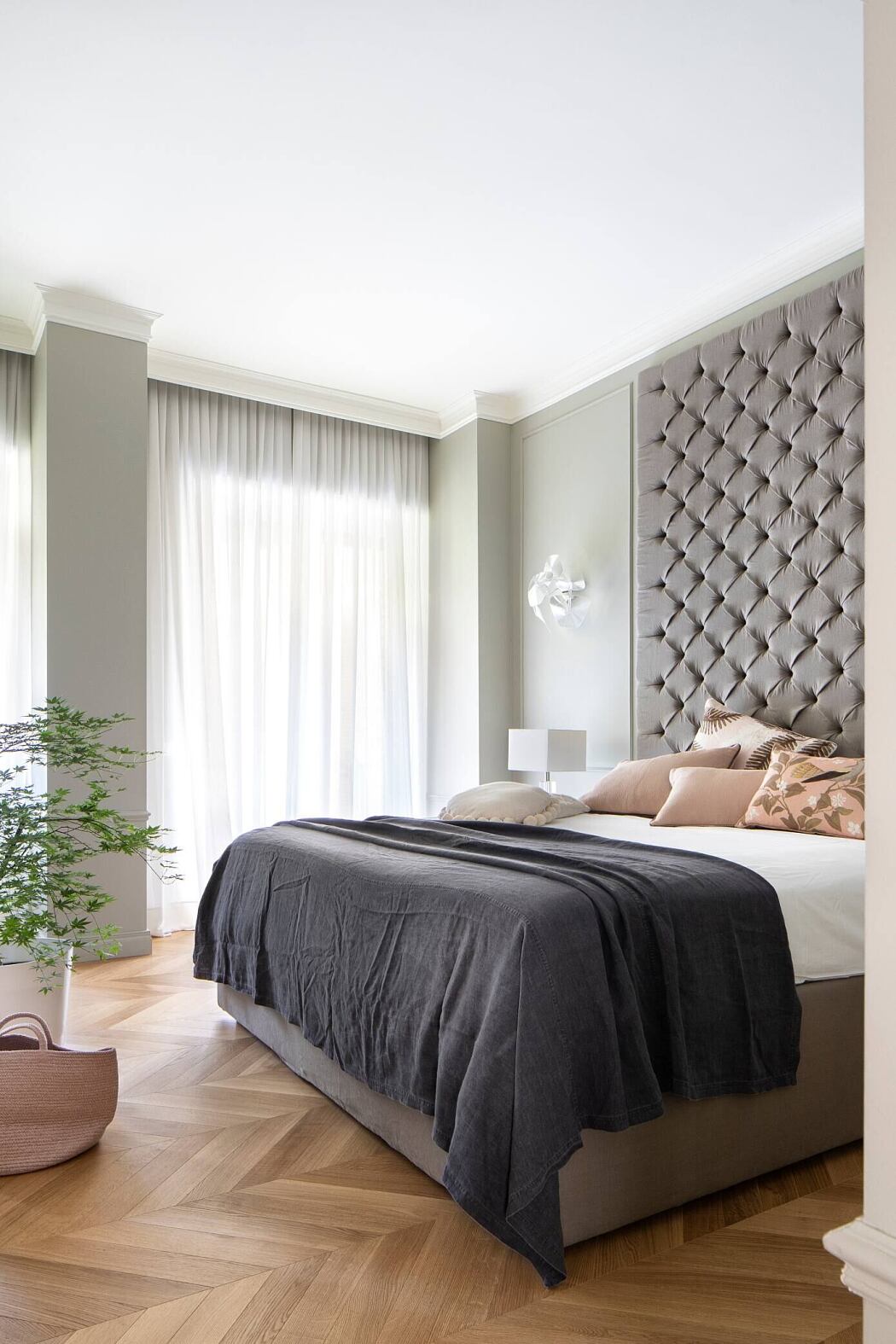 While these areas overlook a street – central yet tranquil – the roomy sleep quarters offer views of the lush inner courtyard’s verdant greenery. Adhering to a classically modern and clean aesthetic, this section of the home immerses in soft, soothing hues.