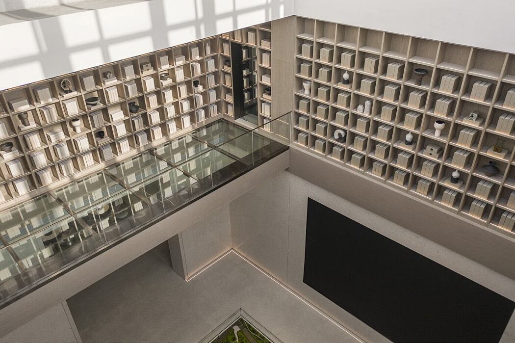 Book shelves on the second floor surround the void, to produce a sense of enclosure and add warmth to the clean, pure space. Besides, unique sensory experiences were created based on various angles of view, hence turning the area into a visual highlight.