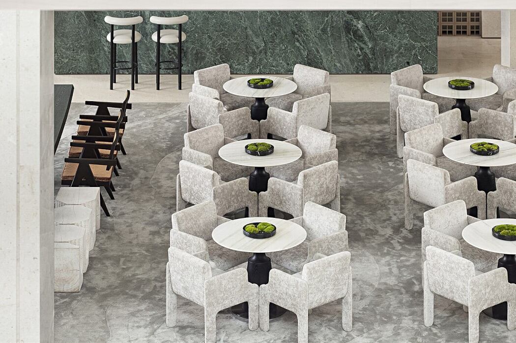 Simplistic design languages inject humanistic warmth into rational interior structures.