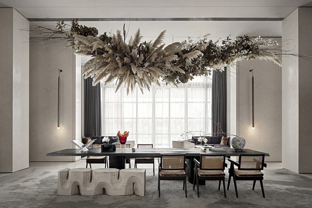 Floral decorations reveal a natural aesthetic, convey Oriental philosophy via artistic forms, and add a poetic ambience to the negotiation area.