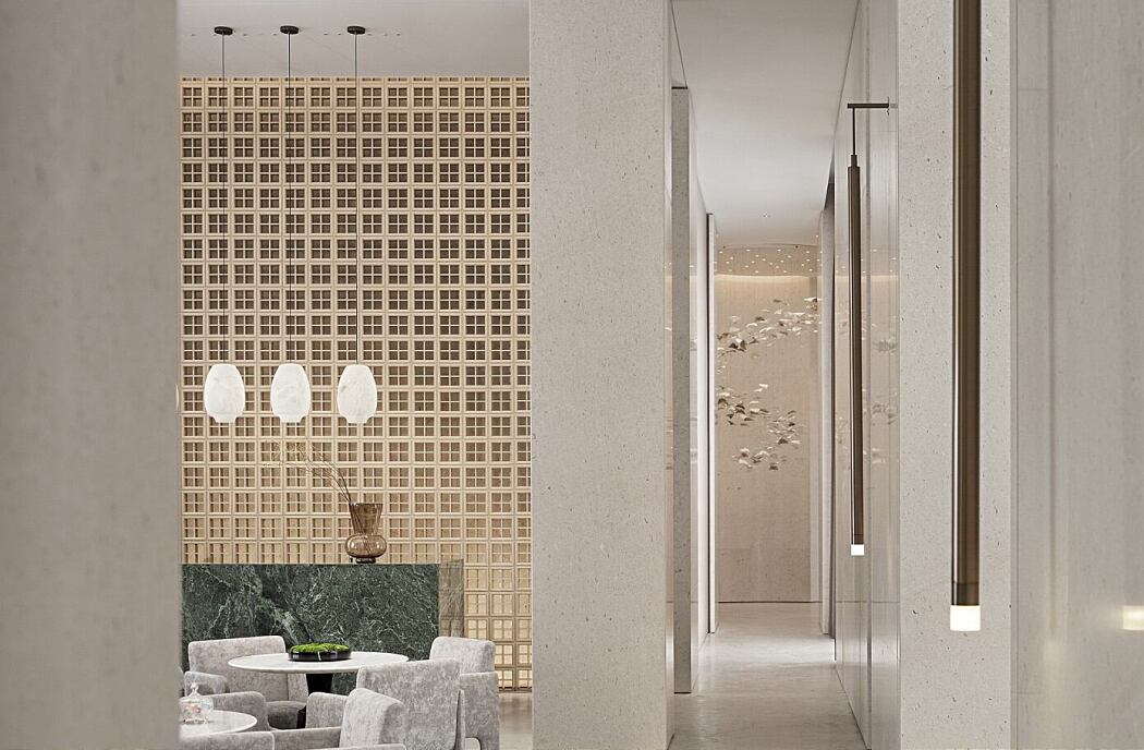 ONE-CU was entrusted to conceive its interior. Through extracting the characteristics of local natural environment and cultural context, Vanke and ONE-CU intended to enable connection between history and future as well as symbiosis between the city and nature, with a view to shaping a new urban dwelling center and supporting the development of Binshui New Area.