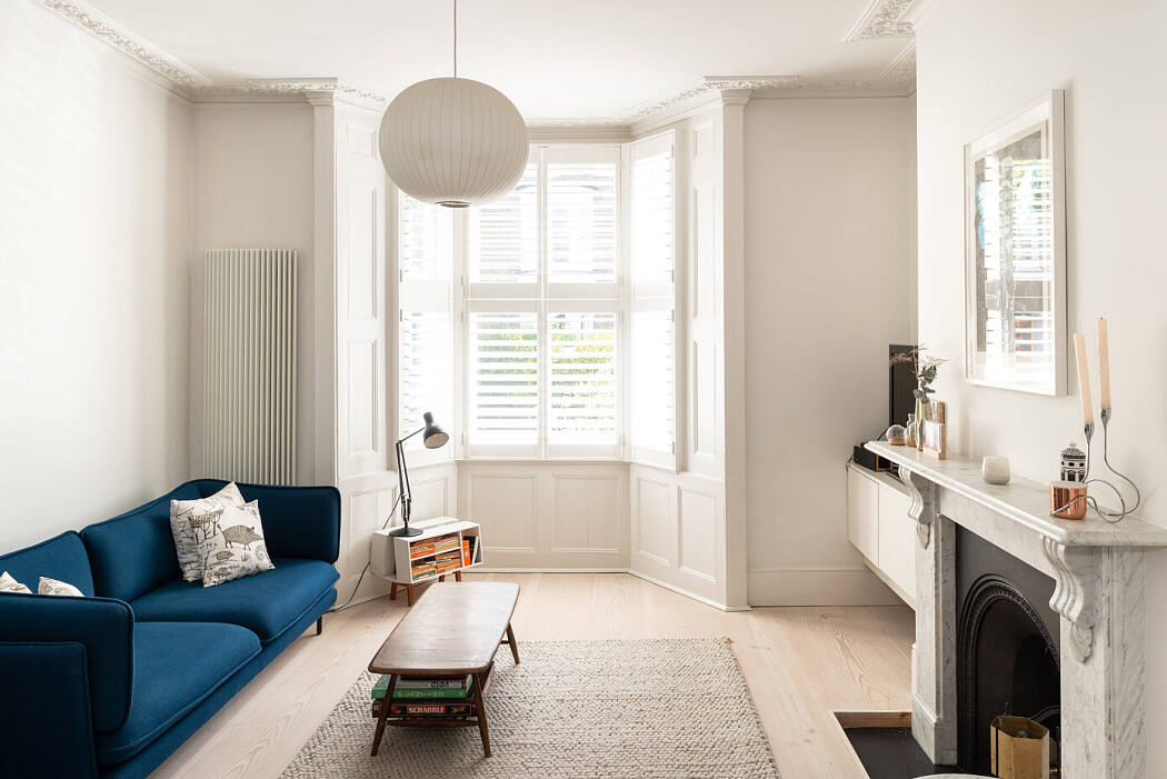 At ground floor the lounge, dining room and kitchen flow into each other, with exposed steel beams and roof joists complimenting the original Victorian features and plasterwork. The wide planks of new Douglas fir flooring unite the ground floor rooms and brings warmth and added texture to the spaces. At the back of the property the new extension accommodates a generous kitchen with large windows looking onto a mature garden.