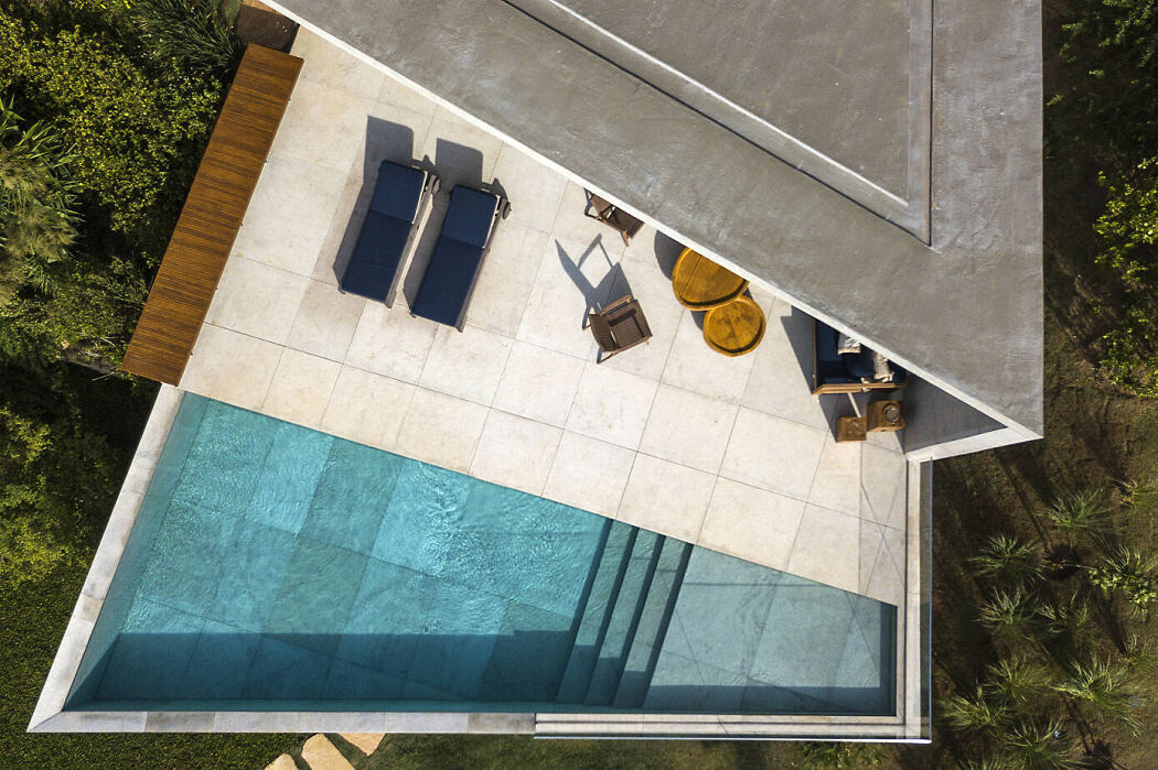 The use of concrete is the trademark of the house. The folding concrete slab, like an origami, establishes the house’s lateral boundary and volume that houses its social sector. The concrete protects the west façade of the residence from afternoon sun, and directs the view toward the east where we have the morning sun and the view of the native forest. All the angles of the project make sense on the terrain and have been designed according to their natural conditions, responding to topography, insolation, ventilation, among others.