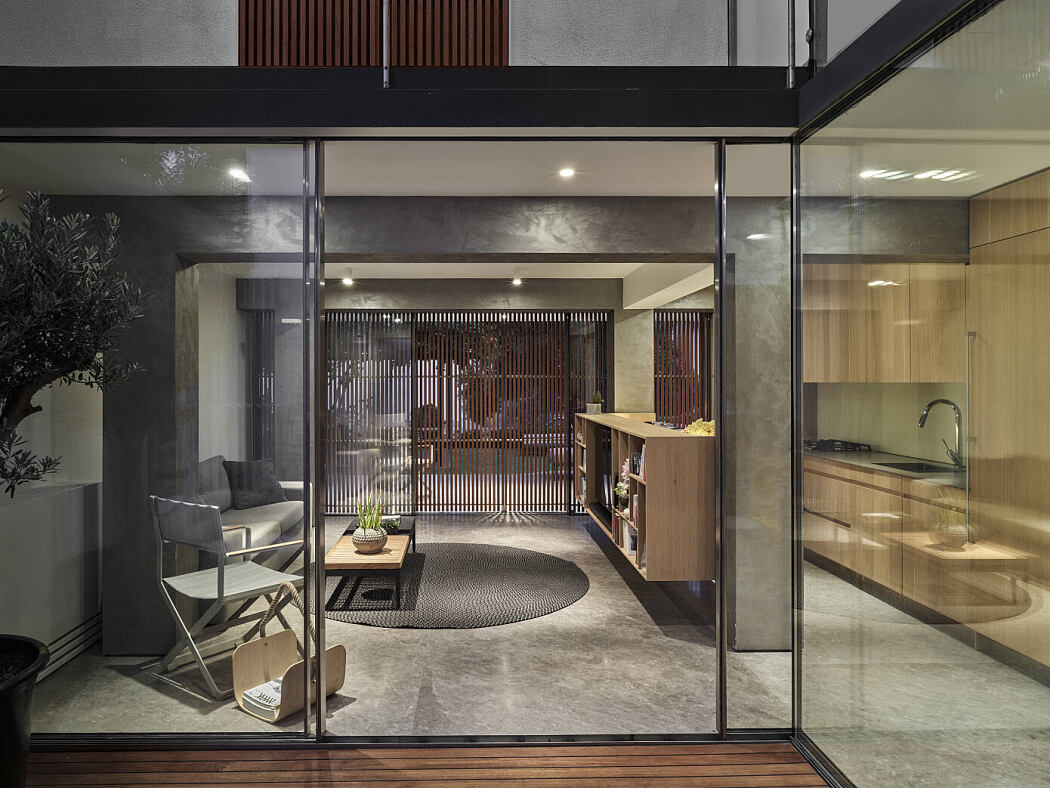 The building itself was also very useful spatially in its current form so that new organization on the plan and additions which would disrupt the existing spatial organization were carefully avoided. During the design process, considering that the building will be experienced in the winter season, the light and insulation problem of the rooms has emerged as one of the primary problems. It is aimed to use the space itself more effectively and in conjunction with the inner courtyard, especially without increasing the hall area. To achieve this, the wall between the inner courtyard and the hall was removed and a glass divider was installed. As a result of this intervention, continuity has been created between the hall and the inner courtyard. The staircase, which was designed to preserve the spatial integrity at the plan level, was also designed in a contrasting appearance to make its presence felt in the space. This contradiction, apart from separating the units in the space, connected all the spaces in the building vertically. In this way, more spacious experiences are provided with continuity between the small units of the house.