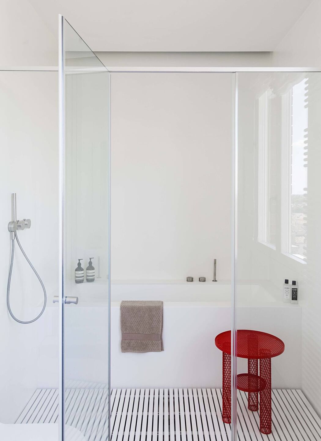 The furniture, designed by the studio, was conceived to create environments with well-defined shapes where empty space becomes something purely perfect.