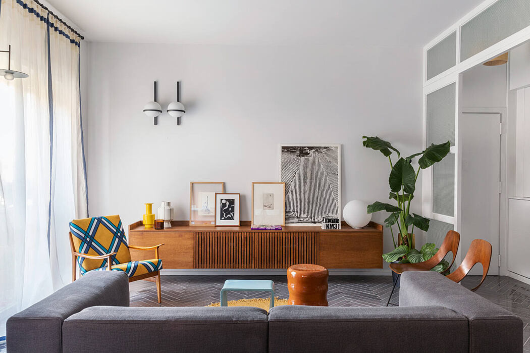 Wood-ash House is a mid-century modern apartment located in Rome, Italy, designed in 2021 by Studio Strato.