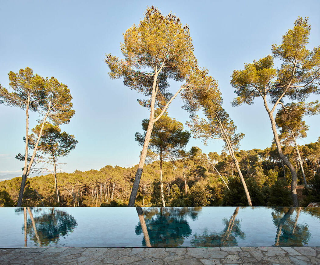 La Calma House is placed in a small town near Barcelona. Its plot is located in a forest area with a very steep slope and an abundance of pine, oak and olive trees. A natural park in front of the plot and the low building density of the area enhance the connection of the house with its natural surroundings.