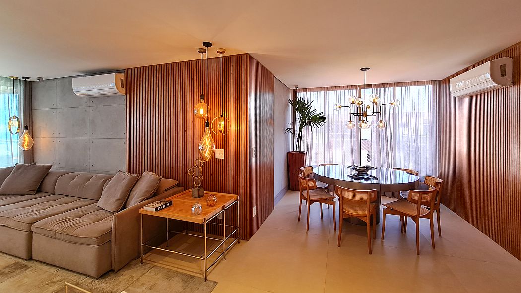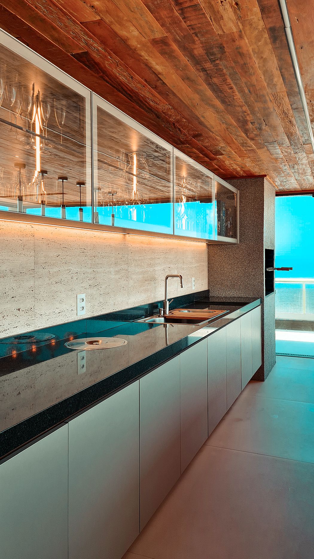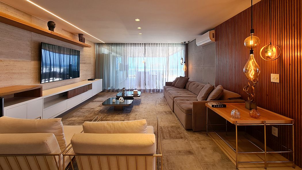 Inspired by luxury contemporary architecture, the firm Arquitetura Trevo, by Ricardo Costa and Daniel Cidrini, invested in a mixture of sophisticated and natural materials, combining modernity and technology, to design and manage the renovation of the Cobertura Camboinhas.