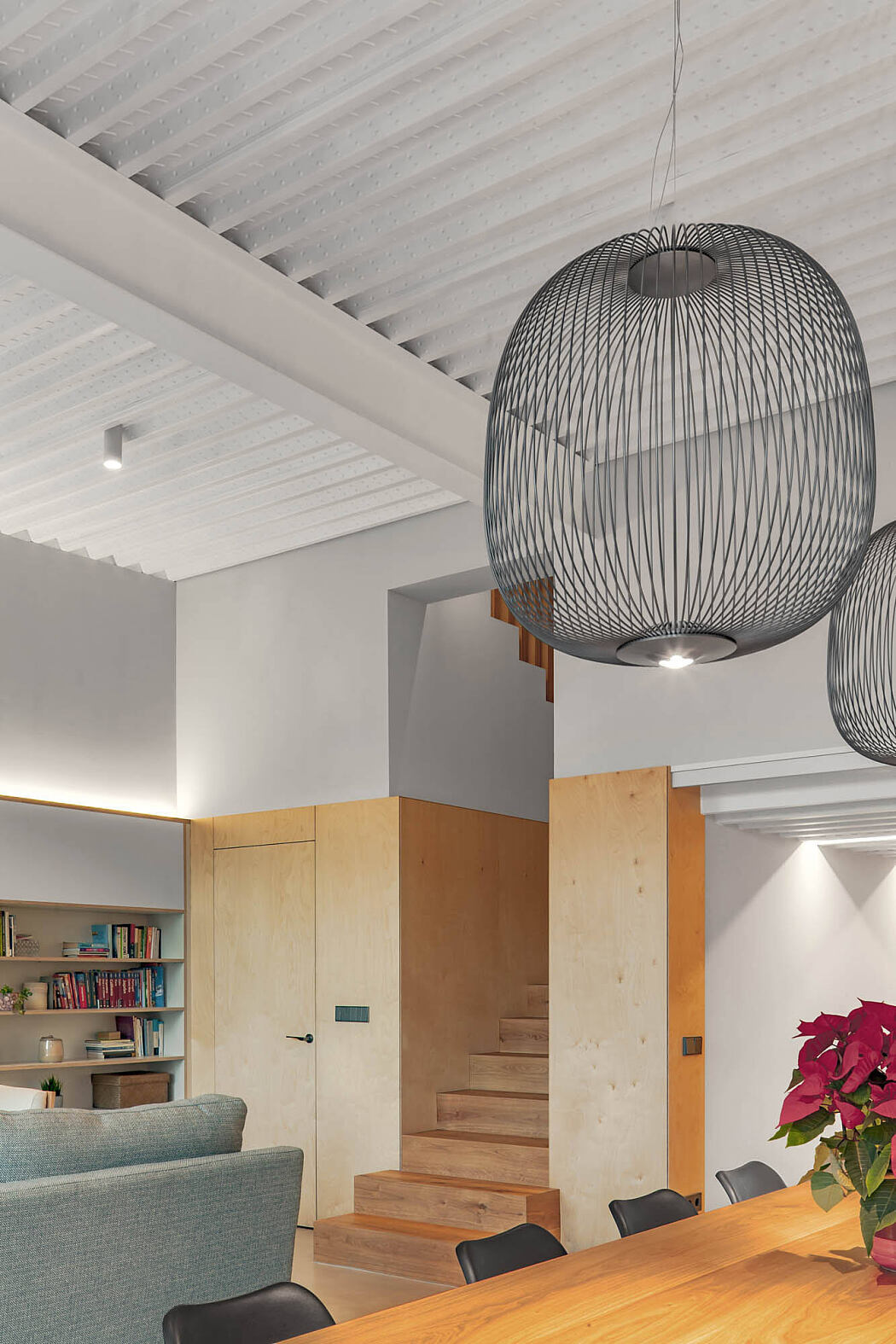 There is no cladding or ornamentation, that is, the space is untreated: concrete, metal structure, and birch wood. A limited palette of colors and materials with the aim of providing support that allows the user to adapt and adapt it according to their requirements.
