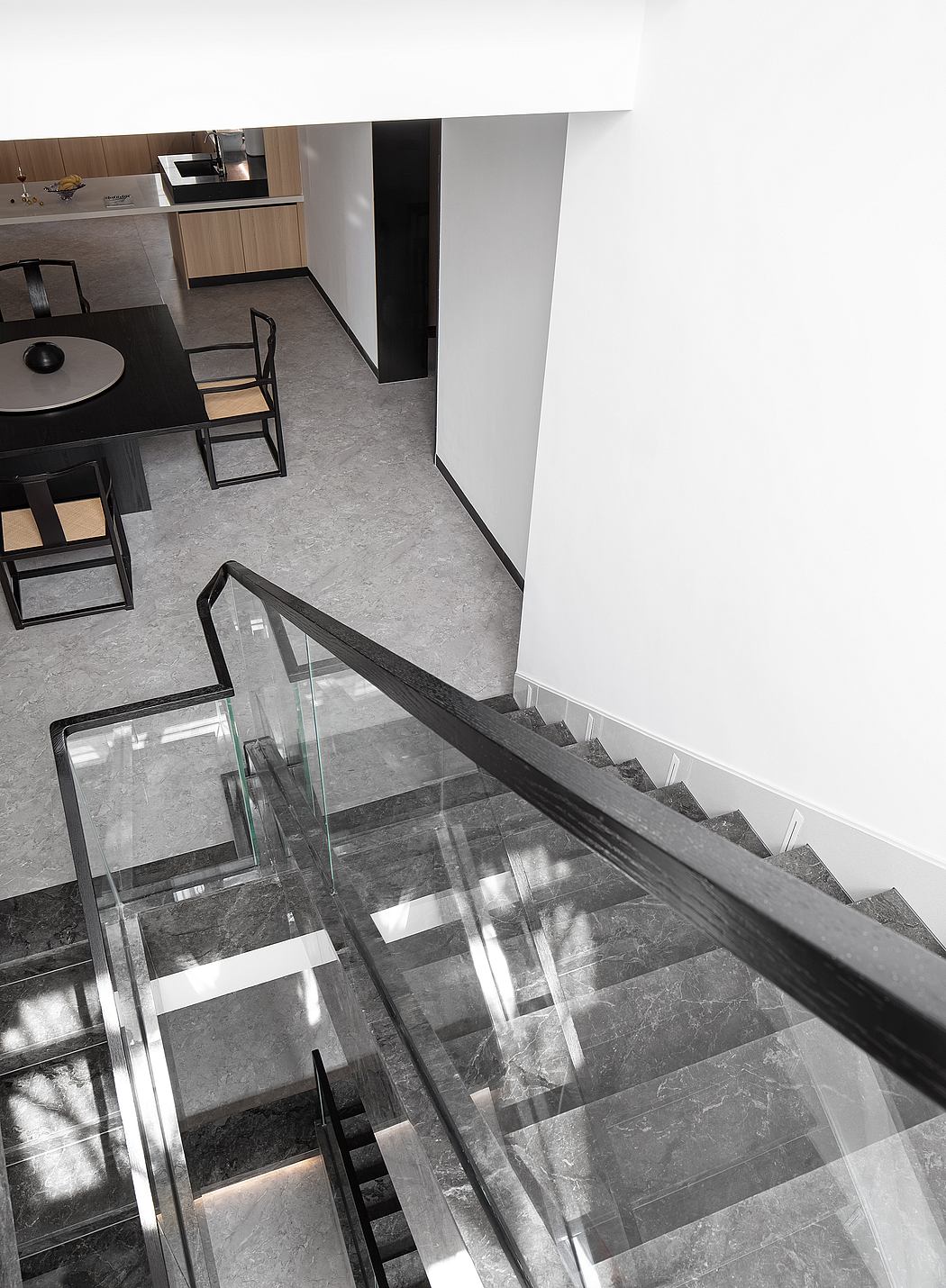 “Architecture is a creation, a reinvention.” Space is created by objects, so objects are functional requirements, as well as the root of the spatial levels. It is a carrier surrounded by movement paths. The simple line details are extended from the underground to the third floor, like frozen notes, telling the story of beauty in space. The staircase is made of stone and the handrail has a transparent glass partition, which allows light to enter. At the same time, it reveals the characteristics of the staircase, creating extraordinary lighting effects and spatial depth.