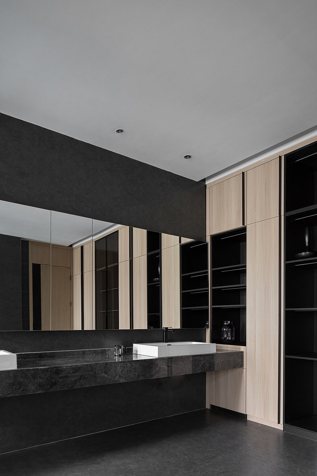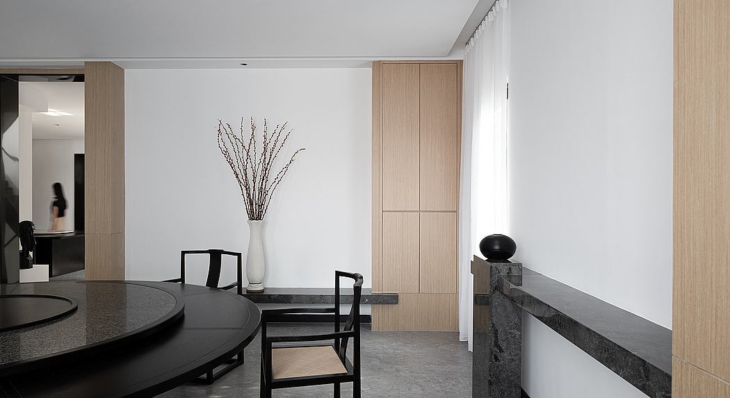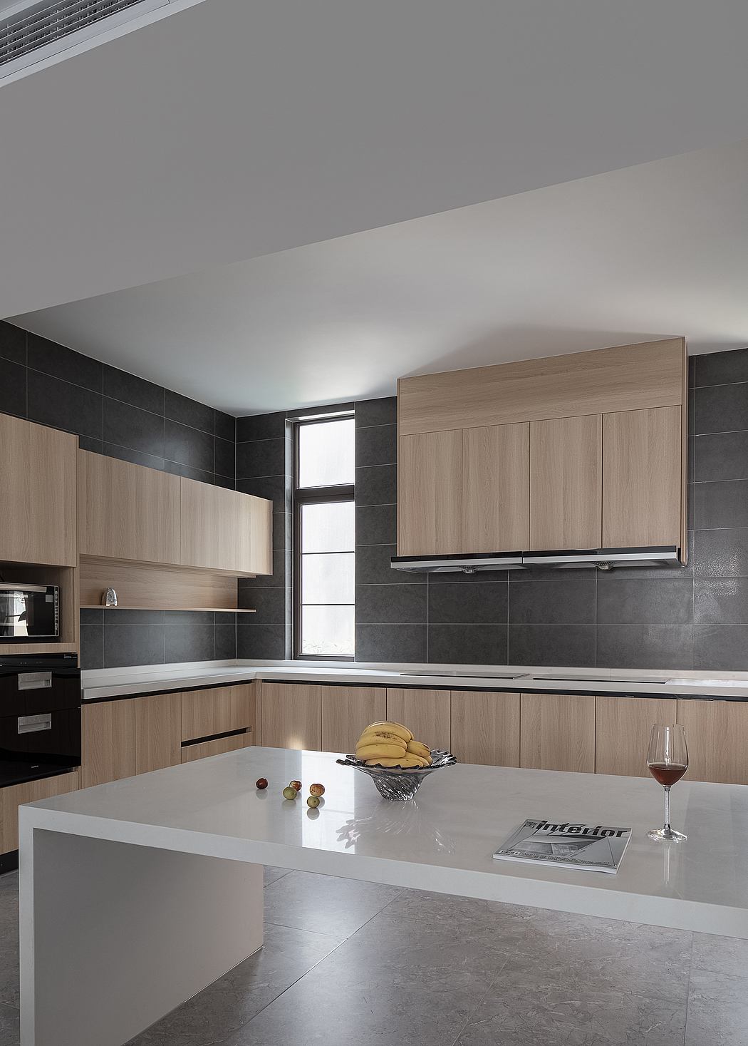 Over the course of time, the space is constantly being redefined. The dining room is a source of vitality to start the day and a healing outlet to release fatigue by staying with family. The elegance of wood is blended with the light and shadow that jumps in. The dining table is interspersed with marble texture, which extends the boundaries and constructs a sense of sight that combines rigidity and softness, implying the life attitude of the occupants. The white island defines the kitchen area, in which the wooden cabinets add a touch of beauty and natural comfort, and the natural light creates a cozy and warm cooking atmosphere.