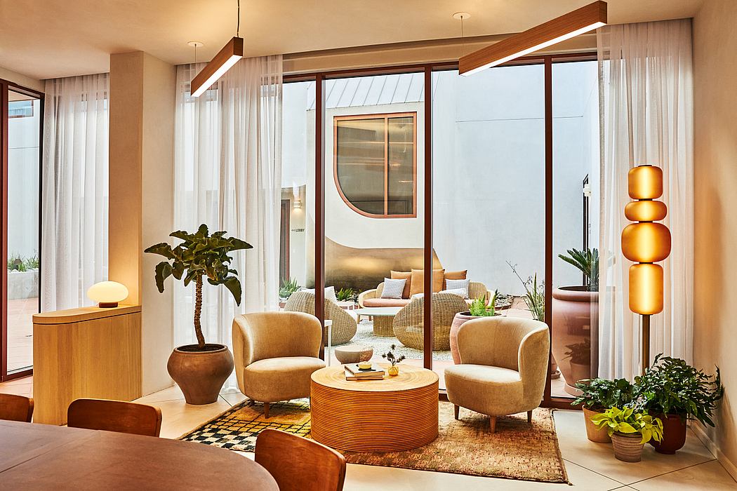 Each 230 square-foot guest room features handcrafted details, whereas larger suites feature a balcony or terrace, a custom dining table, and a bespoke pull-out sofa — blending the charms of old-world travel with new-world comforts. Additionally, Home Studios designed custom furniture for each light and airy room, including upholstered headboard panels, rattan and wood wardrobes, and sculptural brass hooks, transporting travelers to a warm oasis in the midst of a dynamic and energetic urban resurgence.