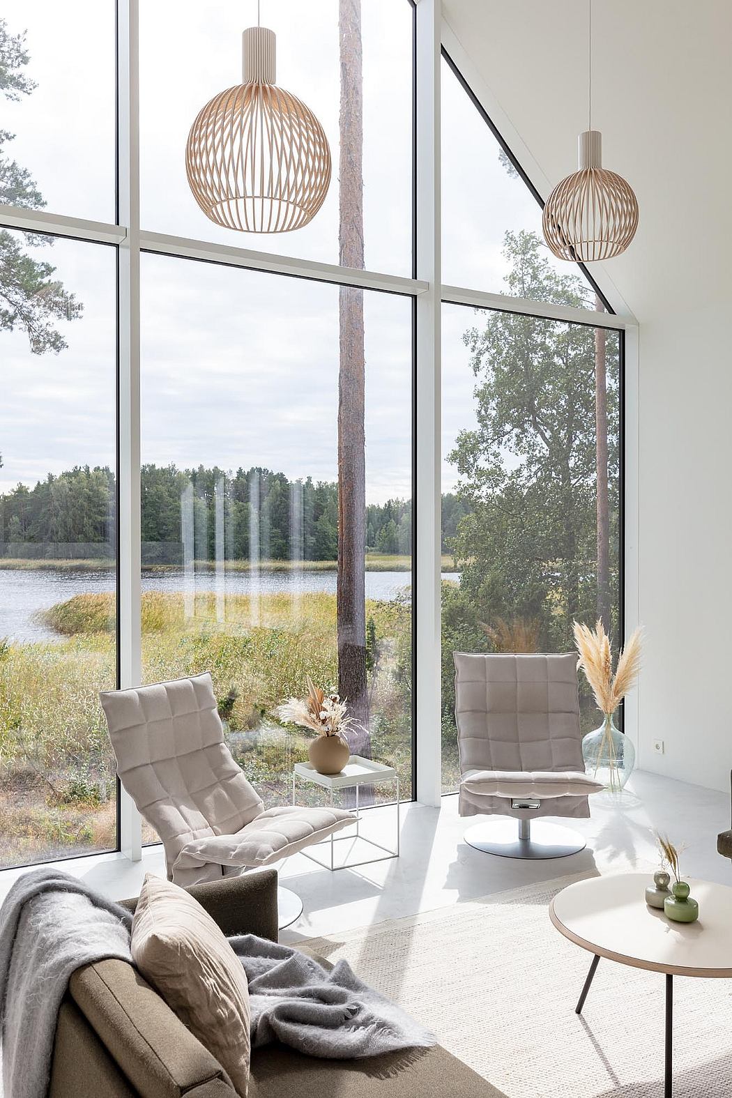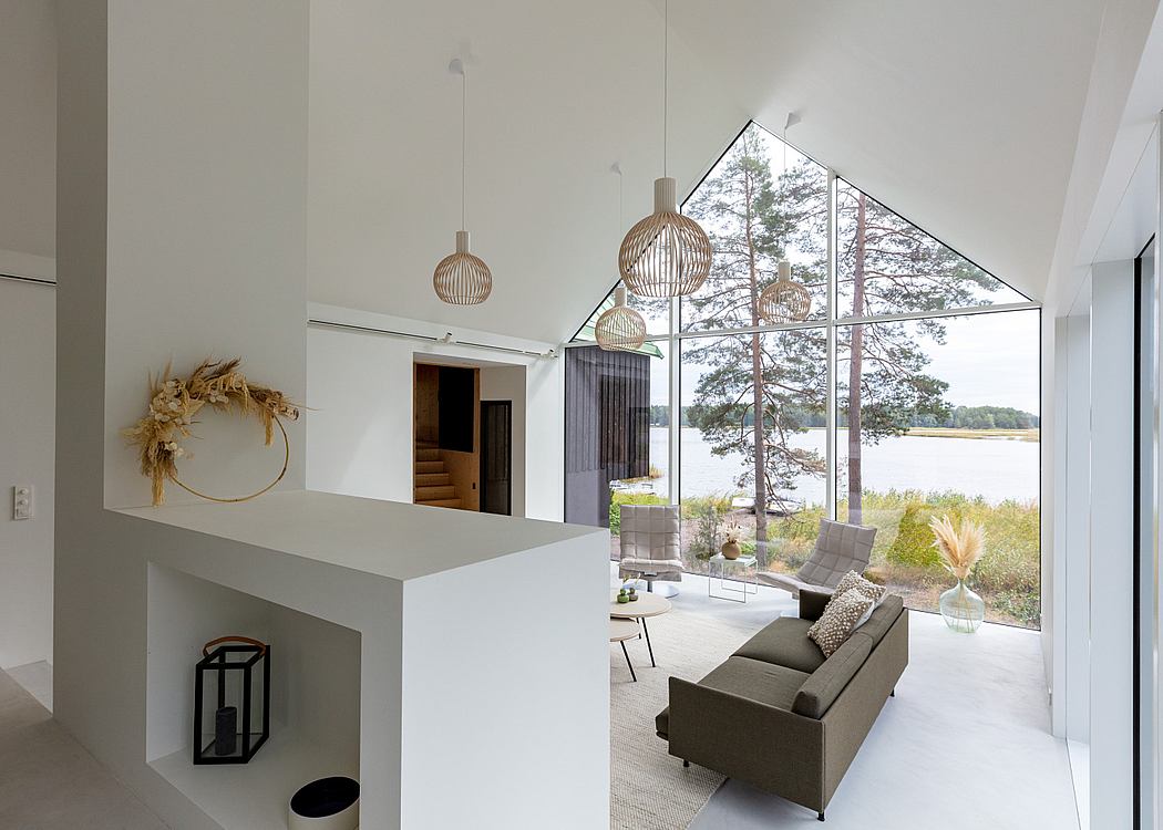As the door opens, so does the view. The beautiful archipelago has the whole interior at its embrace. Behind sliding glass doors the terrace steps lead to the rushes. Every room of the house has a sea view.