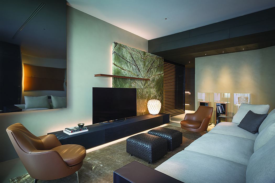 In the realization emerges all the multidisciplinary approaches of the studio, which moves between design and architecture drawing inspiration from both worlds. The harmony between the materials used, the play of reflections between interior and exterior, the customized solutions, and the ability to conceal what should not be manifest, give shape to an apartment sewn, like a tailor-made suit, on the personality of the client.