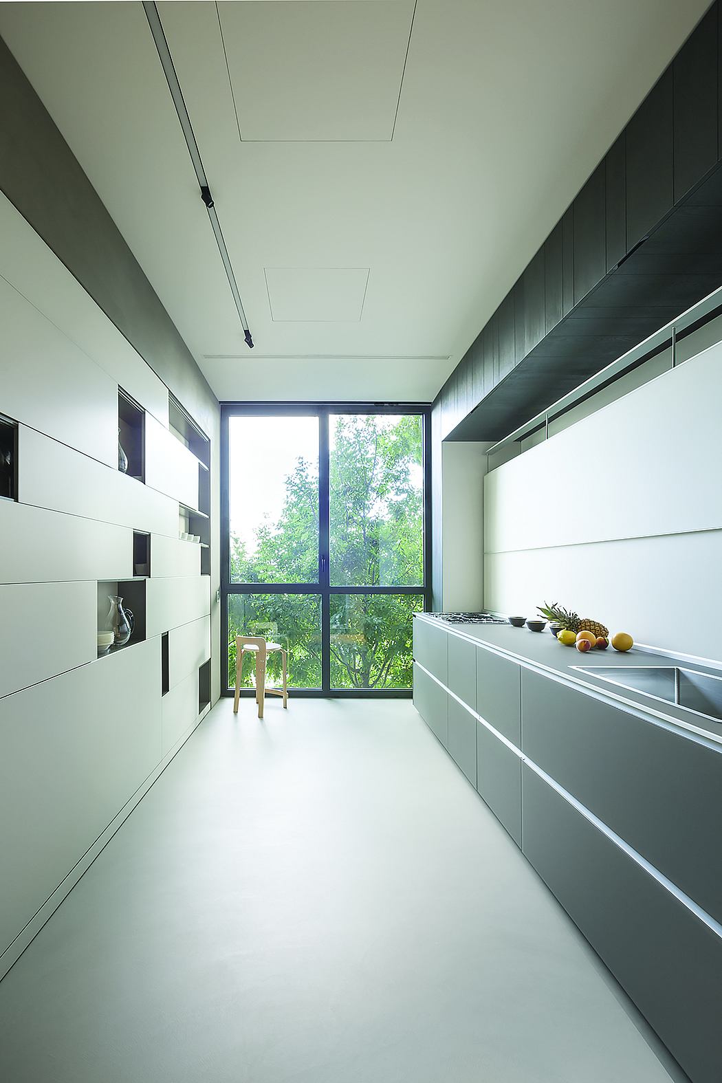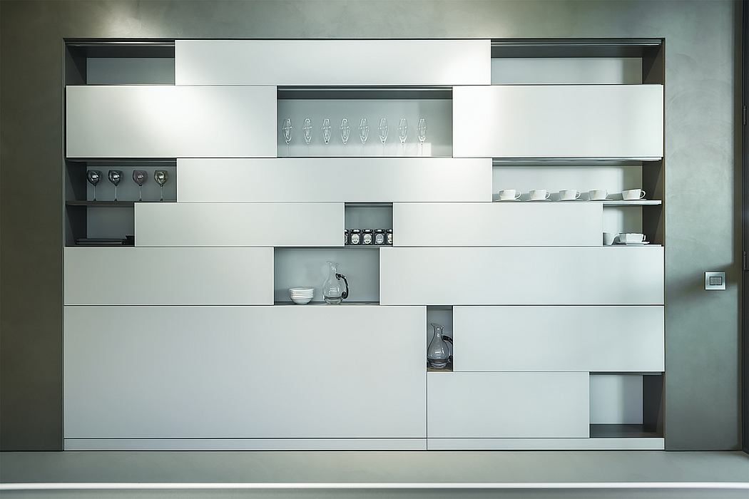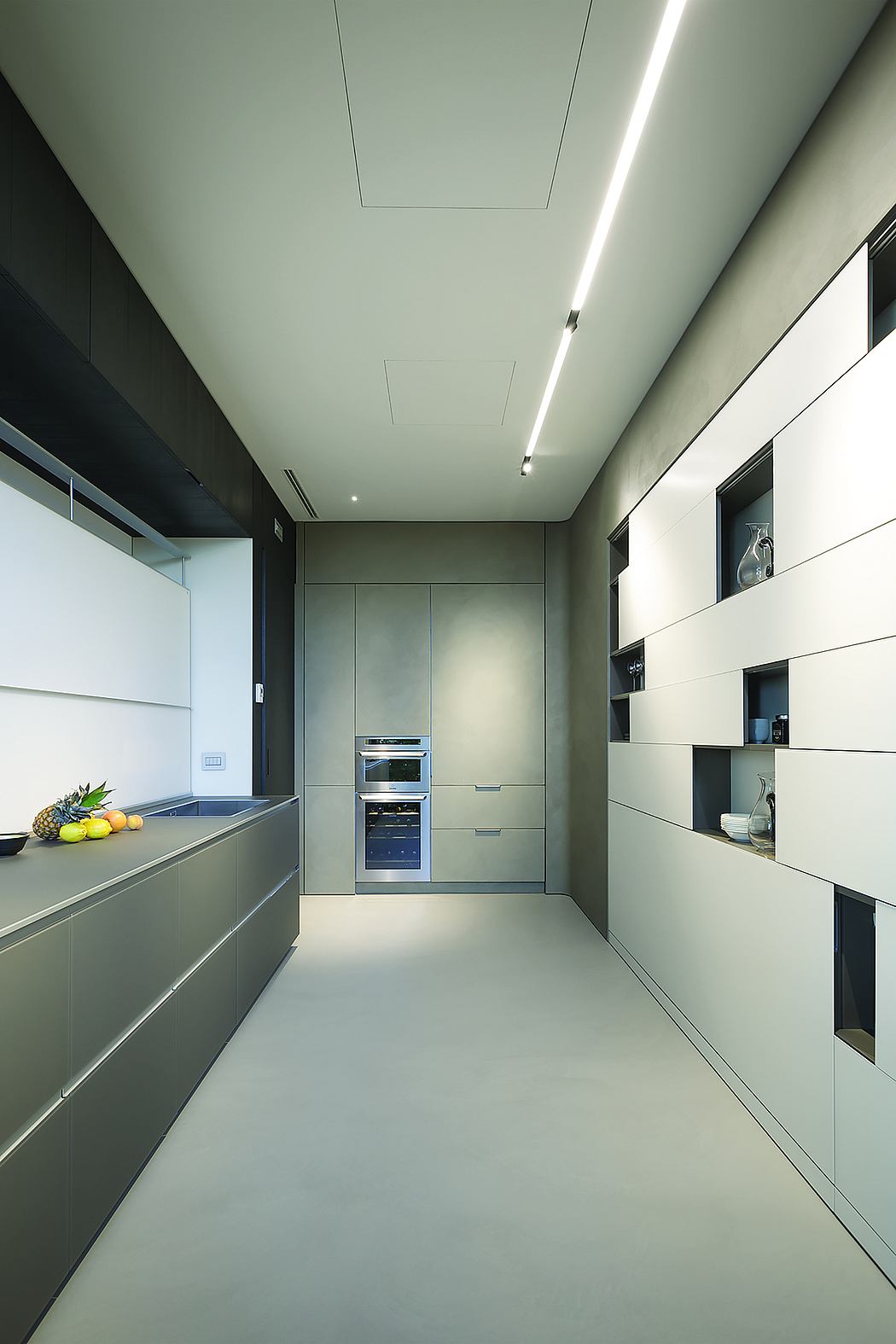 To furnish the space, in addition to custom solutions, the architect has worked with Valcucine, HD Surface, Flexform, Riflessi, FontanaArte, Rimadesio, Molteni, Glas Italia, Davide Groppi. The furnishings also include the Glide extendable table designed by Panzera for Riflessi.