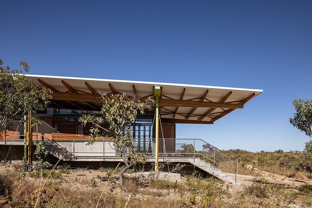 The Palicourea House consists of two buildings: a house and a small studio. One of the family members is a landscape architect who works with native species from the Cerrado, aiming for the preservation and recovery of species from the region’s biome. The studio is her home office and it will also host artistic and educational activities related to her work. Each of the buildings is located on one side of the hill, separated from its highest point, 120 meters apart from each other. The internal spaces were placed at different levels and adapted to the existing topography, slightly suspended from the ground to prevent the entry of small wild animals, to minimize land movement, and to preserve as much of the existing trees and herbaceous vegetation as possible. A system of stairs and ramps connect the house’s internal and external levels. In the studio, the stairs that connect the internal and external levels are transformed into an open-air grandstand.