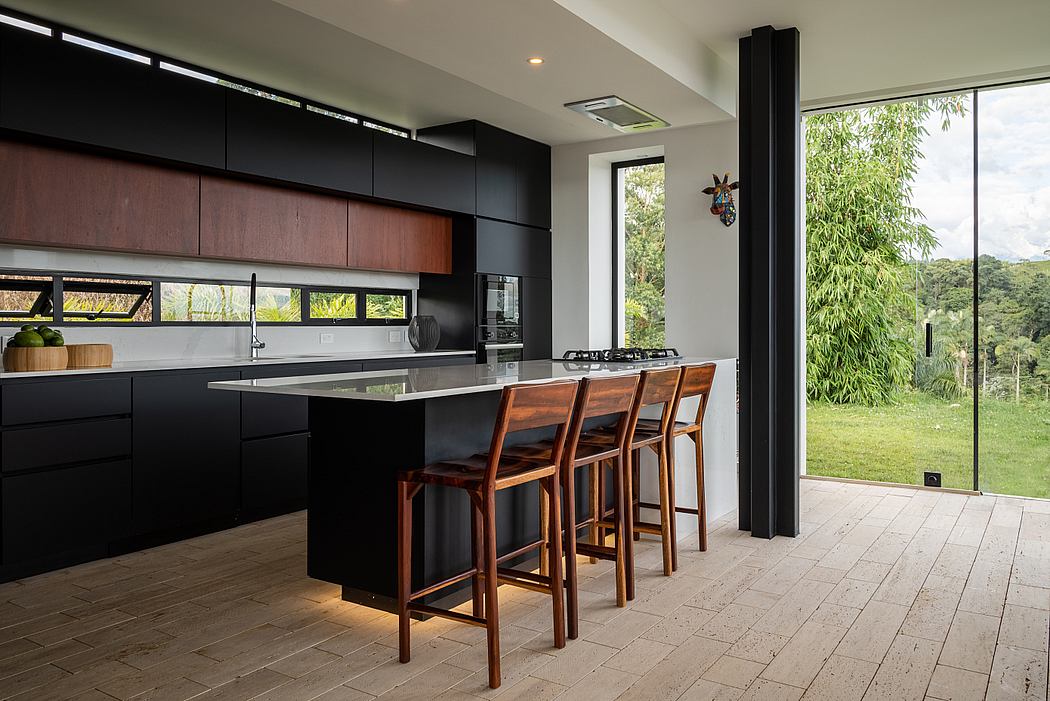 It is in the heart of the coffee region of Colombia, more specifically in the outskirts of the city of Pereira. The site is adjacent to the Nature Preserve Barbas Bremen, the beauty of the views of the Andes Mountains and the park’s flora and fauna inspired the design and encourage the architects to take the fullest advantage of them. The firm’s response to these challenges was to create a house as transparent as possible on the park side while maintaining a sense of privacy over the access.