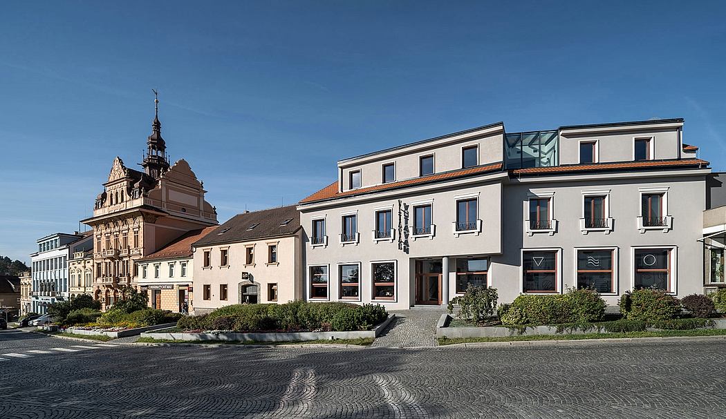 Mixed-use Municipal House is a conversion of a former hotel located in Sedlčany, Czech Republic, by Aulík Fišer Architects.