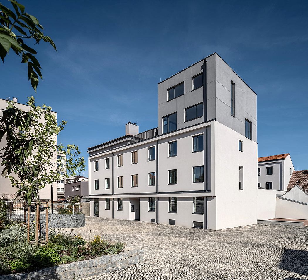 The conversion to the new function did not require extensive interventions into the load-bearing structures. The basic scheme of the original layout proved to be well utilizable. The eastern façade facing the square was retained in its original form except for one glazed dormer. At the same time, a local extension with a two-storey residential unit was added to the western courtyard façade. Our work intended to exploit the simple, unadorned qualities of the original building, including its interiors, for the new function and to integrate original artisan details, although this is far from a case worth of conservation.