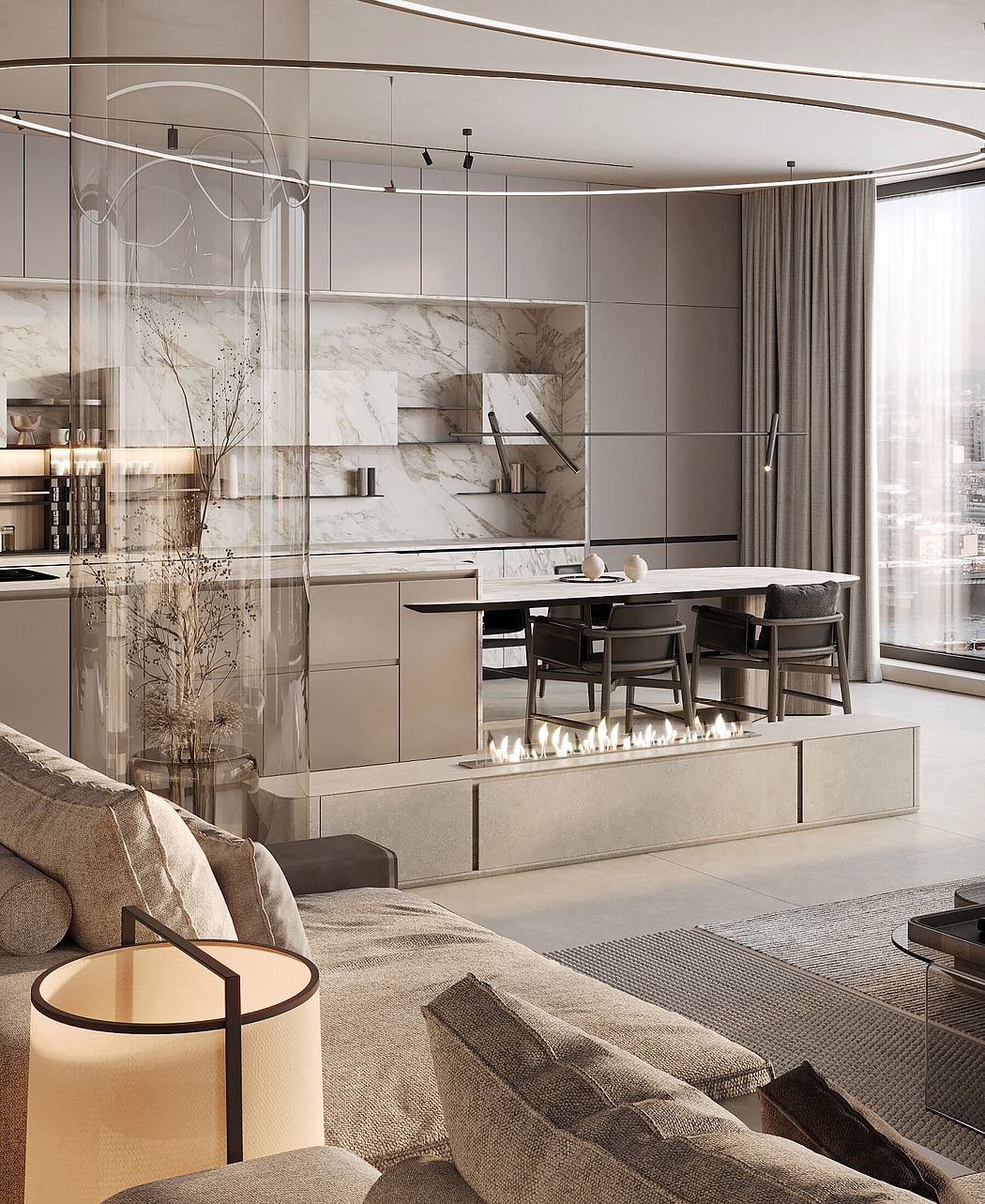 We designed the apartment in a modern style so as to offer a unique and at the same time harmonious atmosphere for a young and very demanding family.