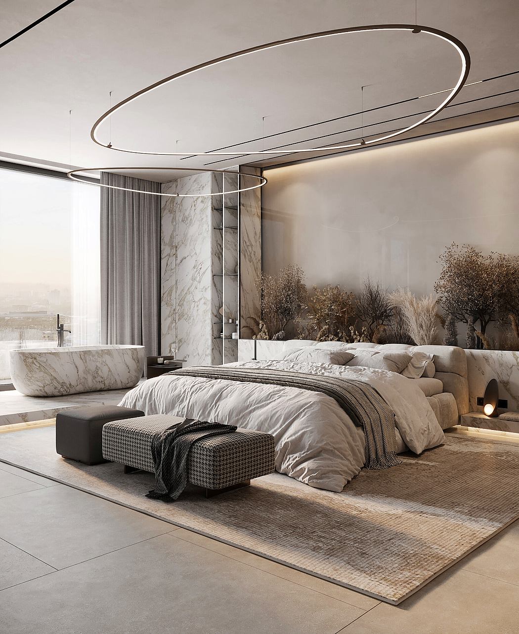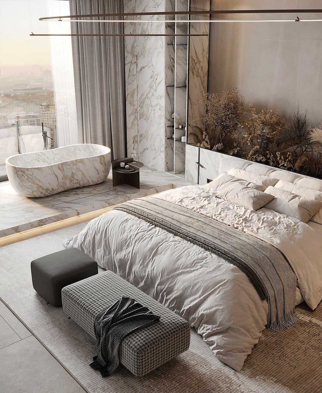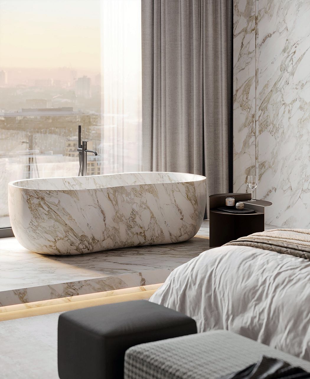 Imagine waking up at dawn in bed from B&B Italia and rewarding after a busy day in the form of well-deserved relaxation while watching the sunset in the Salvatori bath.