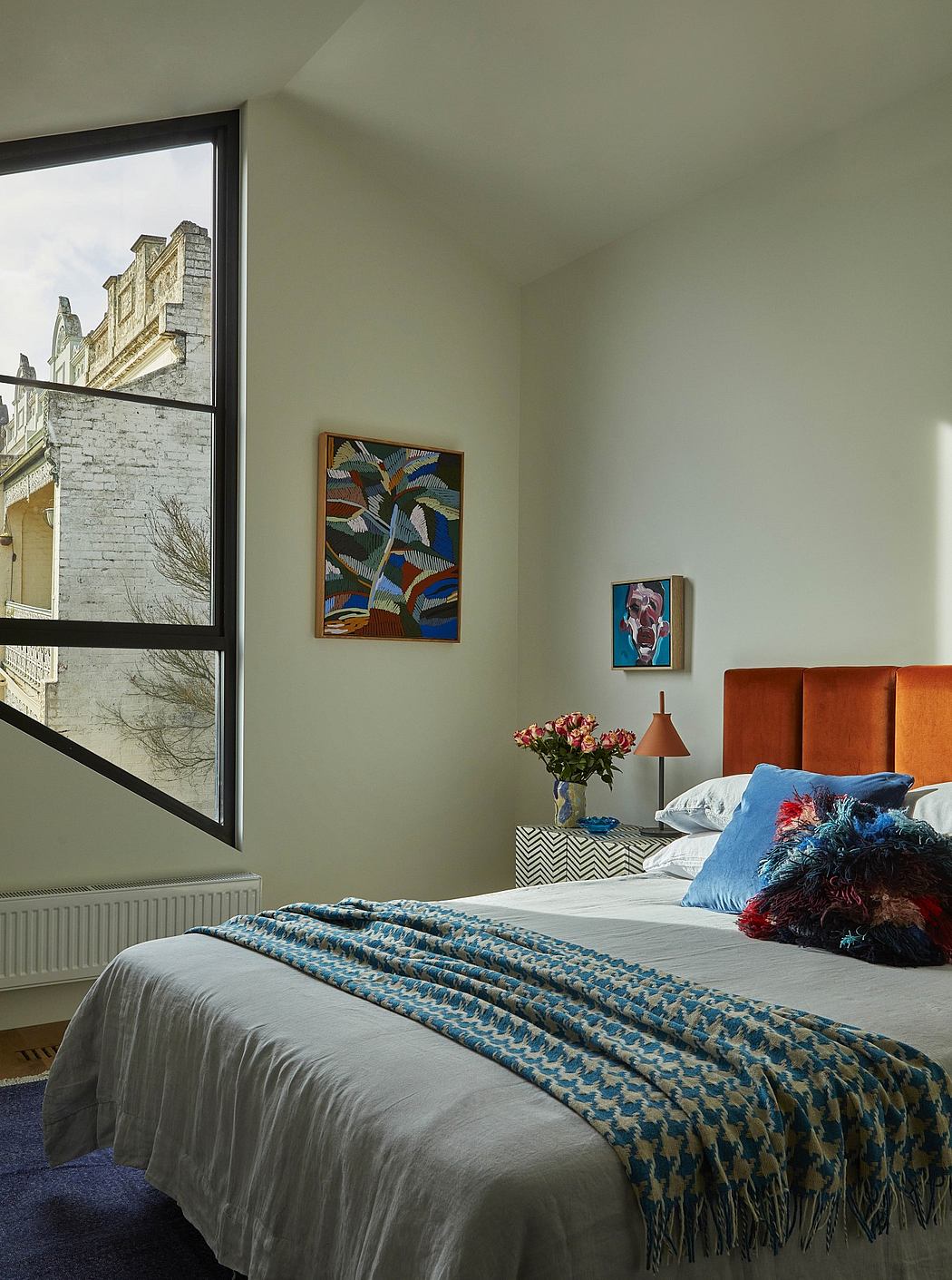 The children have been central to the design with upstairs bedrooms directly connected to the roof deck including a cubby house in the existing Victorian terrace roof space and a vertical garden for planting whilst the city skyline and neighbouring rooftops frame the children’s activities. As architects we wanted the occupants of the home to feel connected to their community, to feel the pleasure of living in a small site by viewing the vastness of its location. The upstairs bathroom with its high ceilings and views of the city, allows the three youngest children to share the shower in joyful play. Fixed bunk beds and nooks in walls allow the children bedrooms to facilitate various activities.