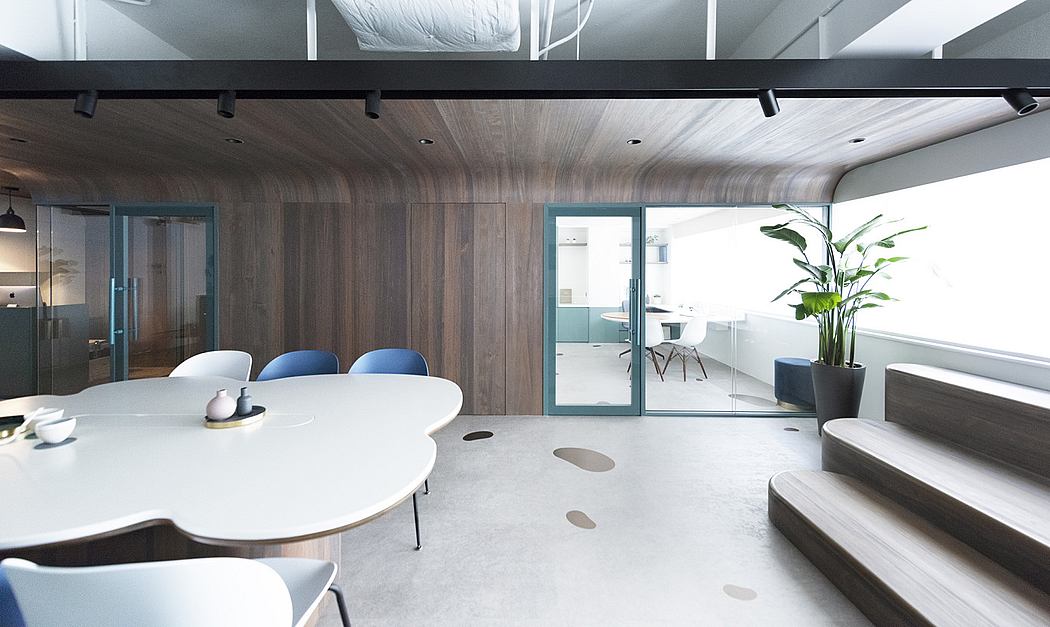 In the centre of the customer space is a co-working inspired sharing table in Bean Buro’s signature curves which acts as a central island unit.