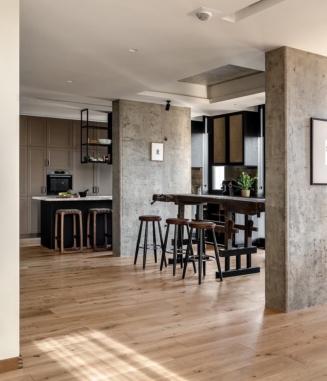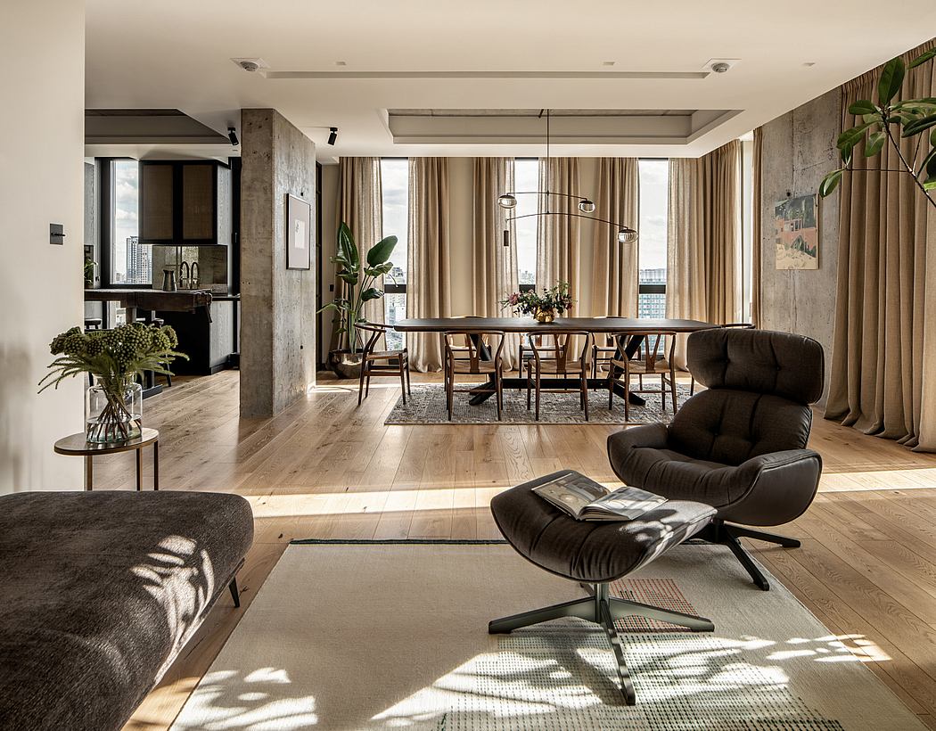 CHICAGO SUNSET is an apartment in the centre of Kiev where particular attention was paid to details, a vintage workbench and monstrously beautiful sunsets. On the verge of brutality and elegancy – that’s how we can characterize the spirit of the project in a luxury loft style.