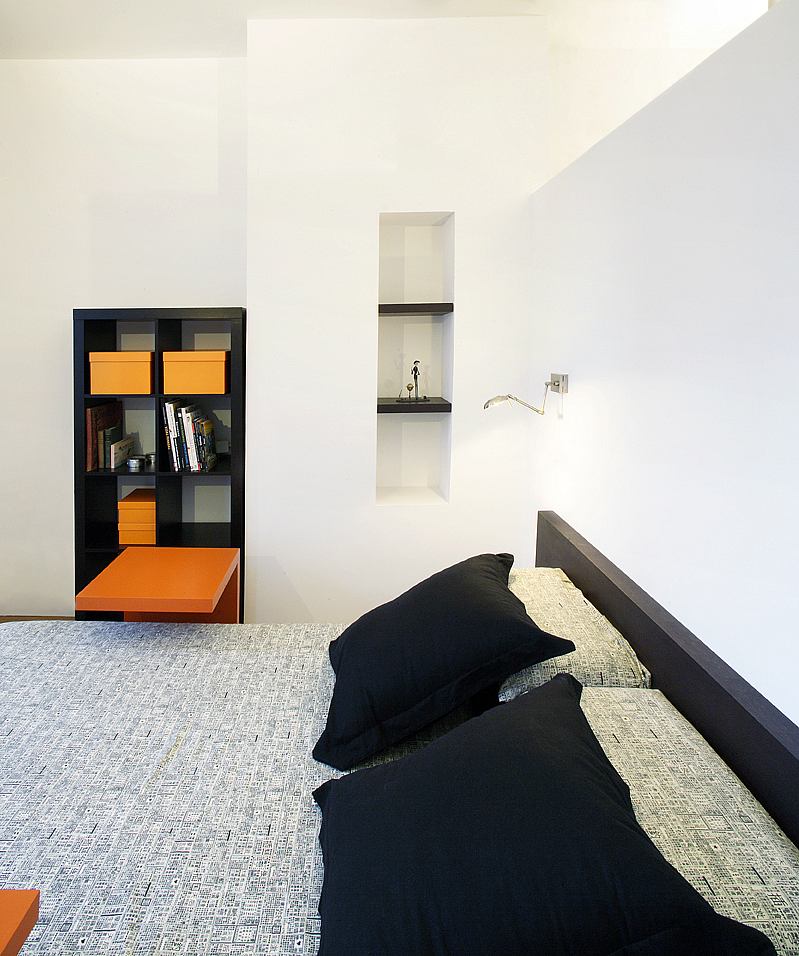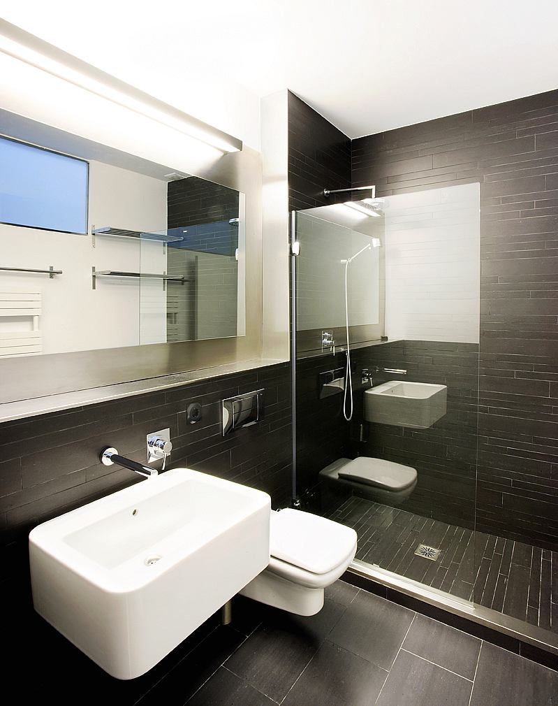The staircase is reformed, with the opening of holes in the side walls to allow more light to enter the bathroom and a library room on the second floor, and the attic study.