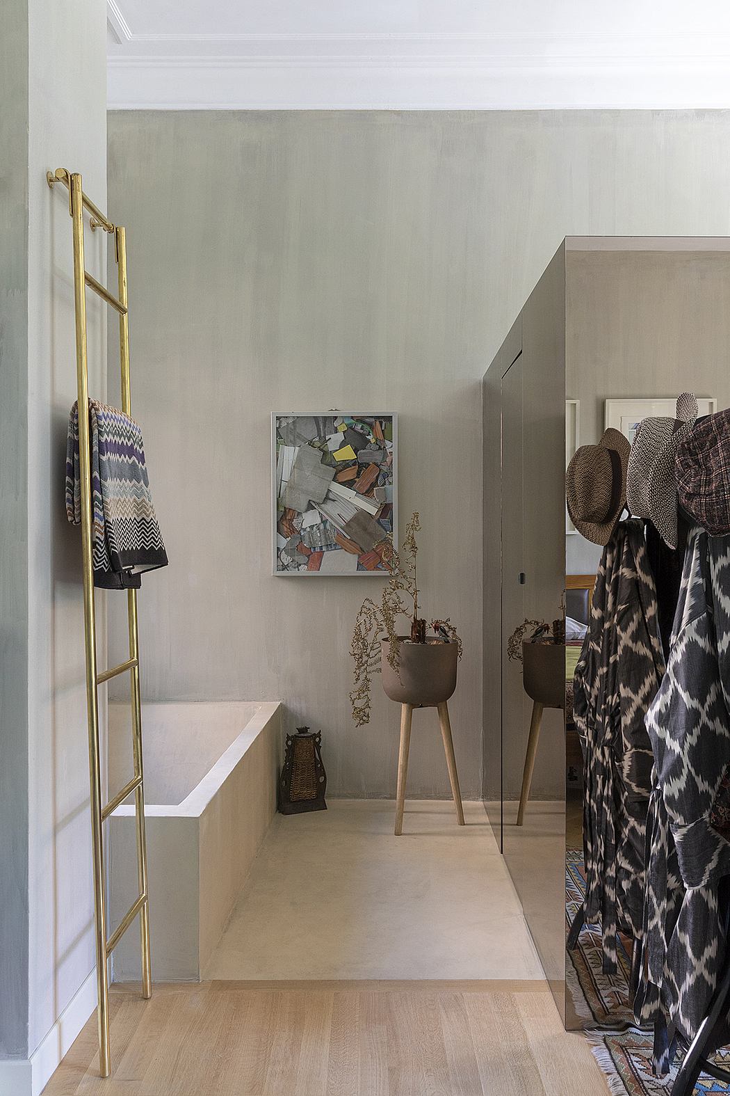 02A completes an elegant renovation where contemporary design, art, and travel treasures blend with natural materials and bold, full-color hues. The luxuriant green of the indoor plants envelops everything, enriching the succession of environments, giving an open and intimate space at the same time for those who, like the owner, live in their home as a citizen of the world.