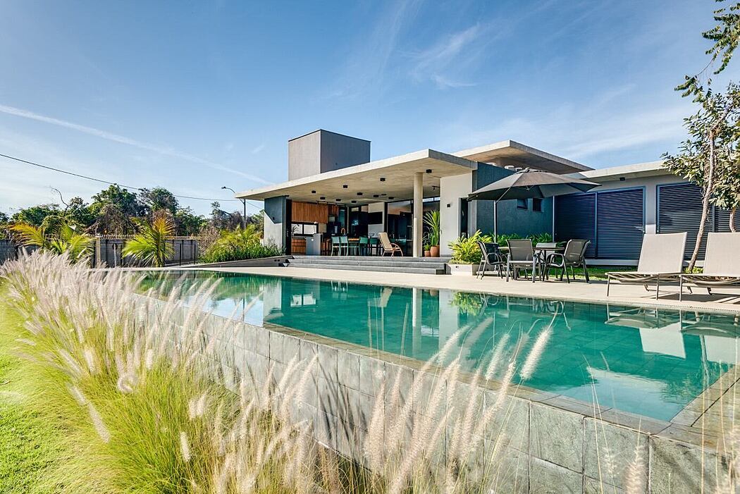 Barú House is a single-story concrete residence located in Goiânia, Brazil, designed in 2022 by Dayala e Rafael Arquitetura.